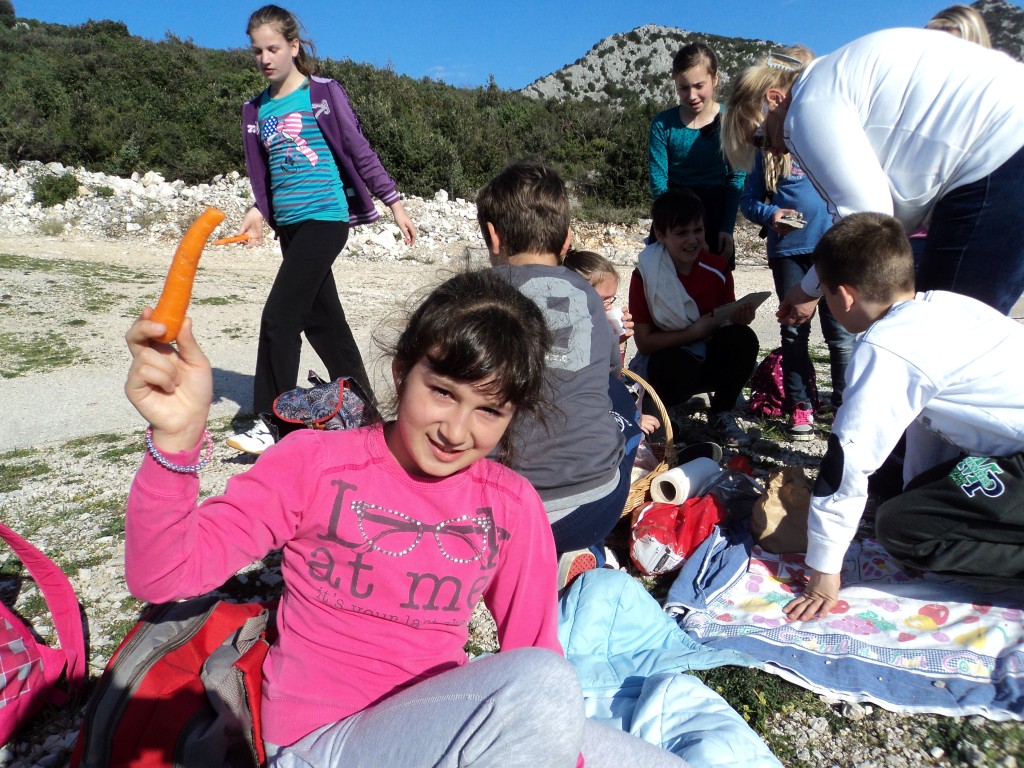 Penjali smo se uzbrdicom da bi došli do heliodroma. Tada je bilo vrijeme za ručak. Učiteljice su nam pripremile ukusan i zdrav ručak. Sve smo pojeli i napili se pravog domaćeg čaja.
