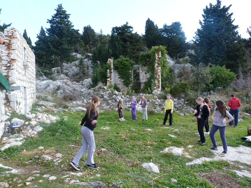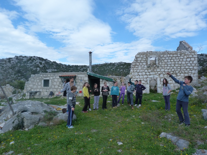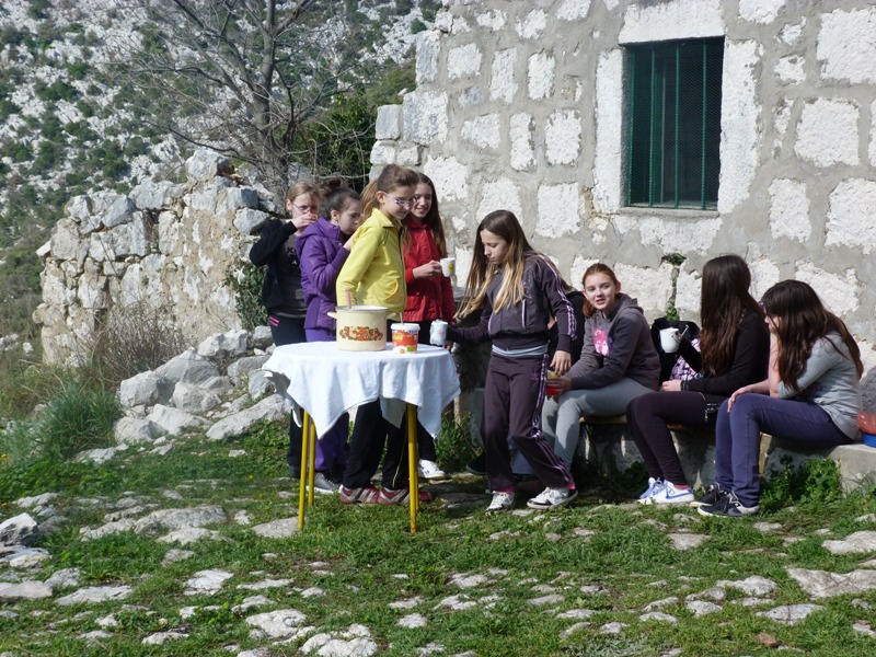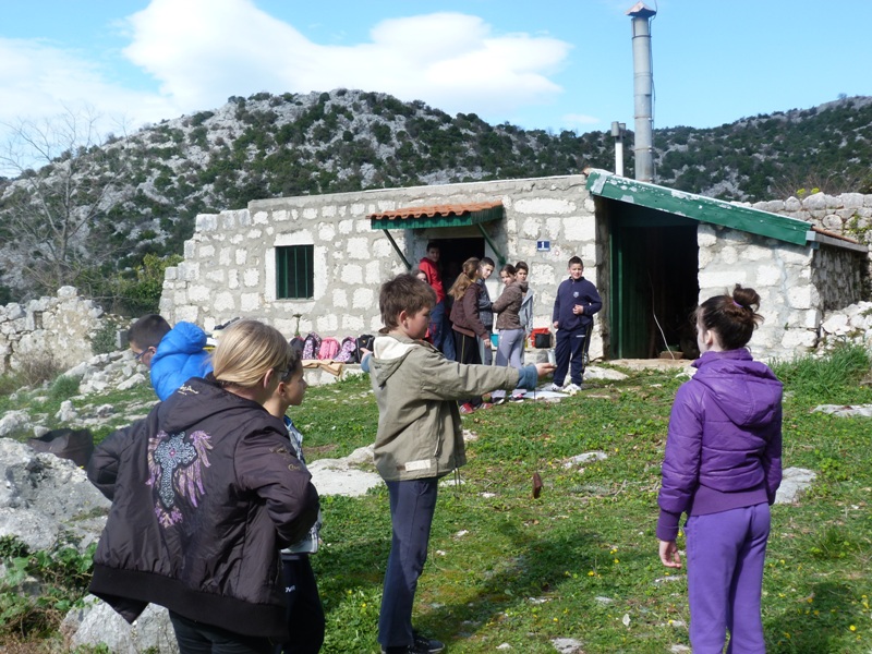 Ispred male kamene kućice dočekali su nas naši domaćini Nikica i Petar Družijanić. Popili smo topli čaj te sjeli ispod drveta uživajući i veselim zvucima ptica i laganog povjetarca koji nam je štipao obraze. Igrali smo se u prirodi na svježem zraku pa je ručak koji su nam spremili naši domaćini bio zaista ukusan.