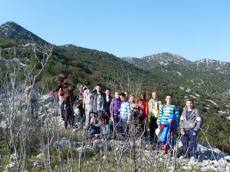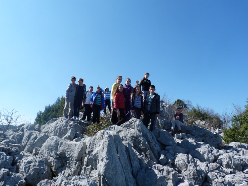 Oko 8,00 sati okupili smo se ispred naše škole te krenuli u Peračko Blato gdje smo se orijentirali odredivši svoj cilj u smjeru sjeverozapada. Posebno me iznenadila ilirska gomila koja je dokaz da su na ovom području davno živjeli Iliri. Penjući se, vidjeli smo puno zanimljivih reljefnih oblika poput škrapa, kamenica i jamica. Biljka zvana mlikutac opominje kako u prirodi treba biti oprezan jer sadrži mlijeko koje može izazvati kožnu alergiju (što mi se nasreću nije dogodilo). Meni jedna od najljepših starina na brdu bila je mala kapela na čijem su se mjestu, kako sam čuo, zavjetovali roditelji dječaka koji se smrznuo čuvajući ovce. Približavali smo se svome odredištu.