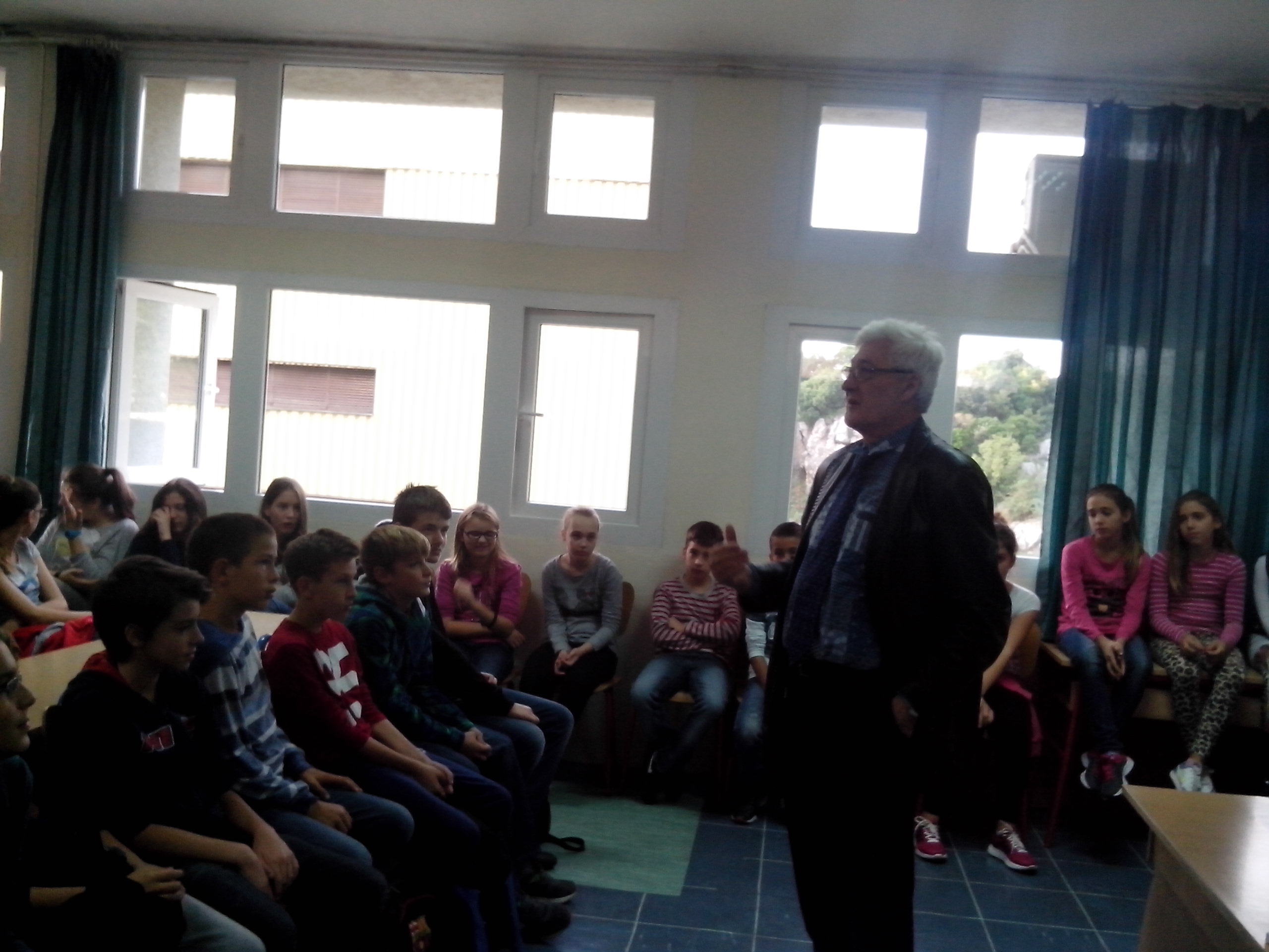 Na kraju je odvojio vrijeme za znatiželjne učenike koji su mu postavili mnogo pitanja te je nakon susreta i intervjuiran.