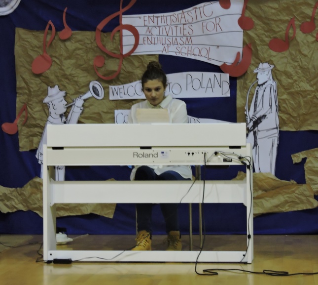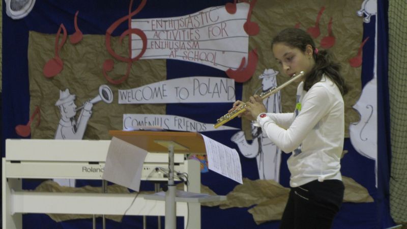 Nakon zanimljivih tema susreta u Hrvatskoj i Turskoj (lokalna hrana i lokalni plesovi), tema susreta u Poljskoj bila je glazba. Entuzijastično, zainteresirano i ubrzano pripremali smo se gotovo dva mjeseca za naše predstavljanje u Poljskoj. Učenice Sunčica, Rebeka i Ingrid, u čast zemlje domaćina, pripremile su klavirske izvedbe Chopina, dok je učenica Josipa uvježbala skladbu za flautu domaćeg skladatelja Bobića.