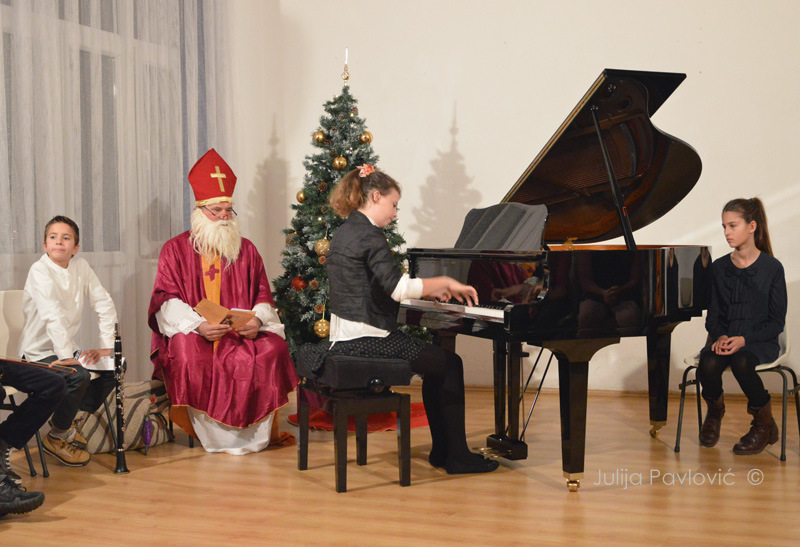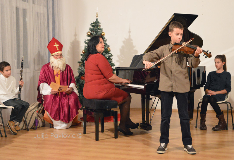 Nakon što je okupljene pozdravila voditeljica glazbenog odjela prof. Helena Dilber Plećaš, svi sudionici su otpjevali pjesmu "Sv. Nikola nam stiže" uz glasovirsku pratnju prof. Jasne Krilić. U jednosatnom programu publici se predstavio 21 učenik svirajući skladbe poznatih skladatelja na instrumentima violina, glasovir, saksofon i klarinet.