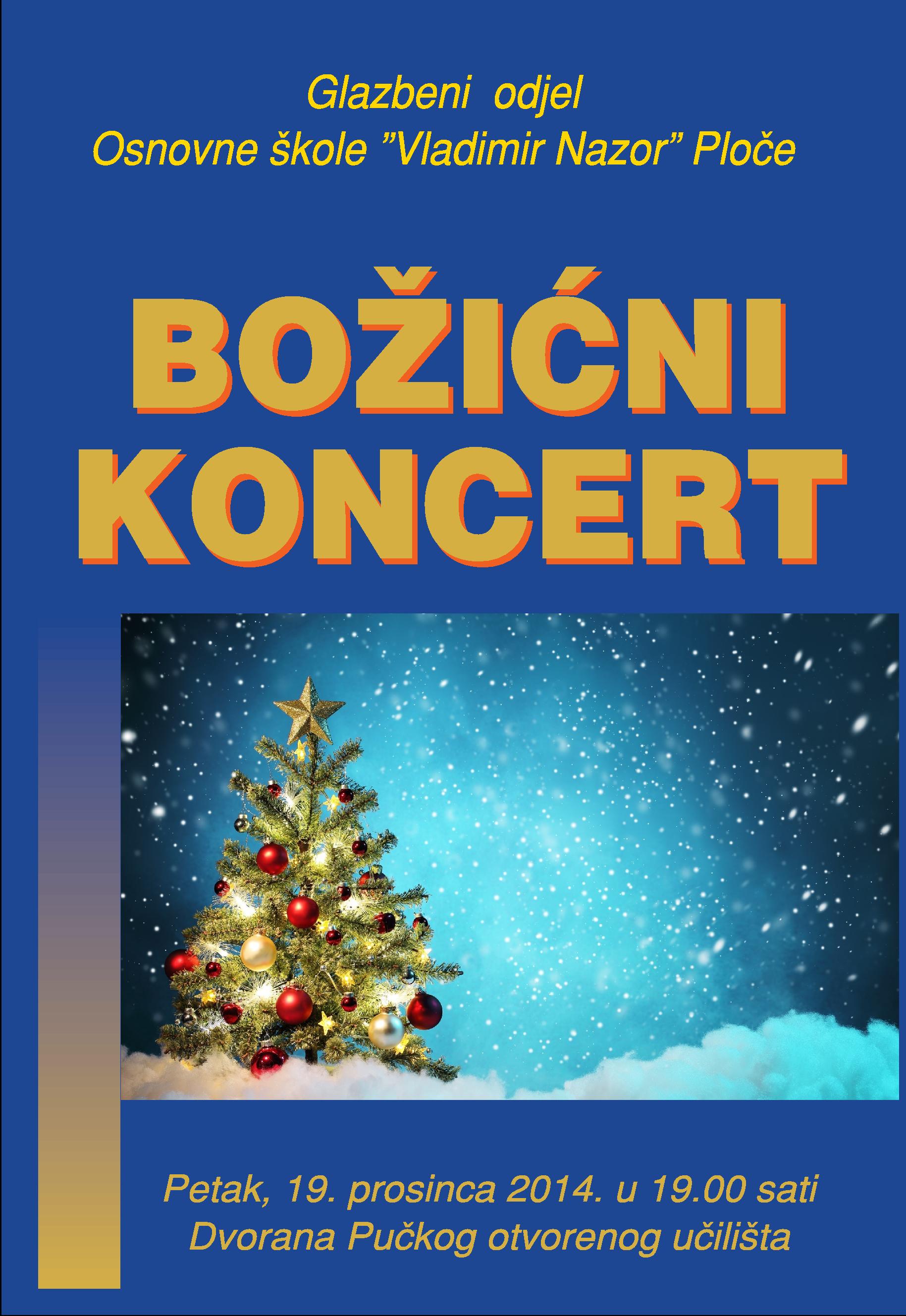 Pozivamo vas na Božićni koncert učenika glazbenog odjela OŠ Vladimir Nazor koji će se održati u dvorani Pučkog otvorenog učilišta u Pločama, u petak, 19. prosinca 2014. godine, s početkom u 19 sati.