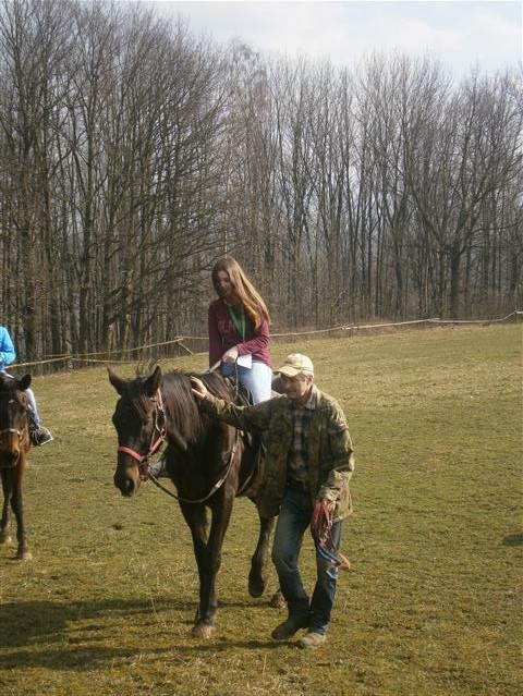Poslije ručka u školskoj trpezariji prošetali smo do vrha brijega koji dominira nad mjestom i uživali u krajoliku. Zbog ljepote, mira i pristupačnosti stambenog prostora ovamo u zadnje vrijeme doseljava sve više građana obližnje Ostrave. Za naše djevojke izlet je bio prigoda da se okušaju u jahanju, i naravno, bile su uspješne!