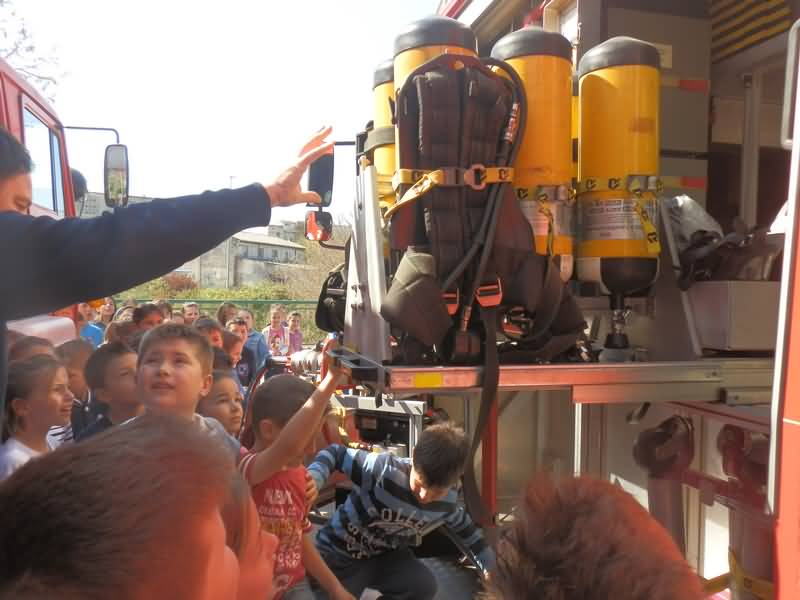 Učenici su se rado i sami okušali u demonstraciji rukovanja protupožarnim aparatima. Ovo je bio koristan, ali za naše učenike i veoma ugodan vanučionični sat. Zahvaljujemo dragim vatrogascima na prijemu i strpljenju koji su pokazali prema našim učenicima.
