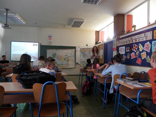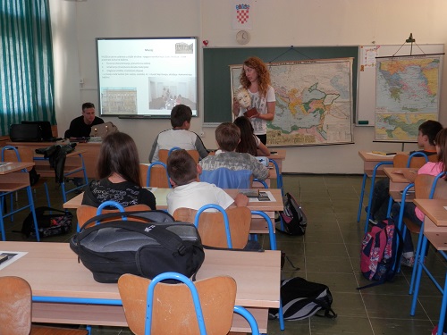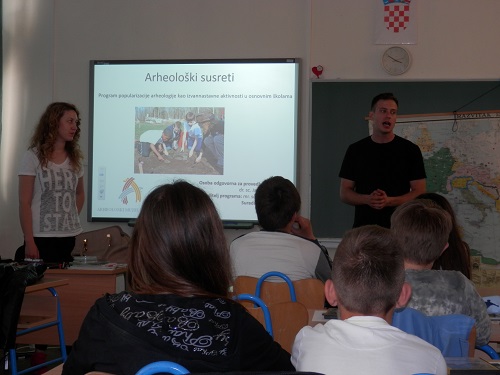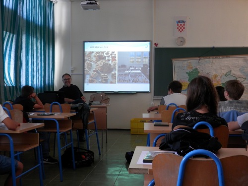 U sklopu ovog programa arheolozi Anja Bertol i Ozren Domiter iz Zagrebačkog Arheološkog muzeja posjetili su učenike 5. b razreda naše škole na nastavi povijesti s nastavnicom Adrianom Kostanić Burić i održali im predavanje o arheologiji općenito. Pridružio im se i ravnatelj Arheološkog muzeja Narona, Toni Glučina, te im prezentirao arheološka nalazišta njihove okolice, s posebnim naglaskom na istoimeni lokalitet.