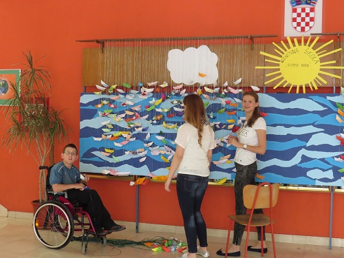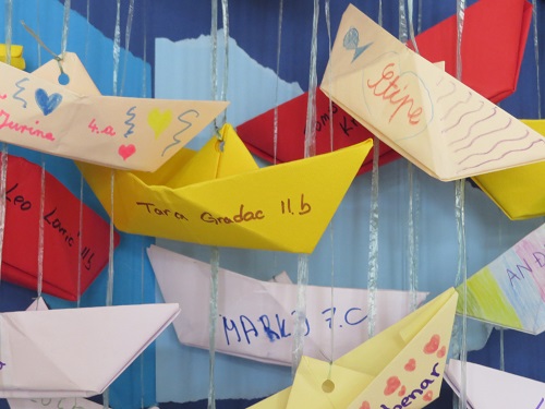 „Škola kao sigurna luka“ prizor je prekrasne morske površine na kojoj zajedno plove 494 papirnata brodića – koliko je učenika u našoj školi!