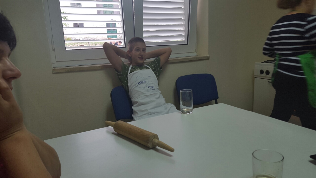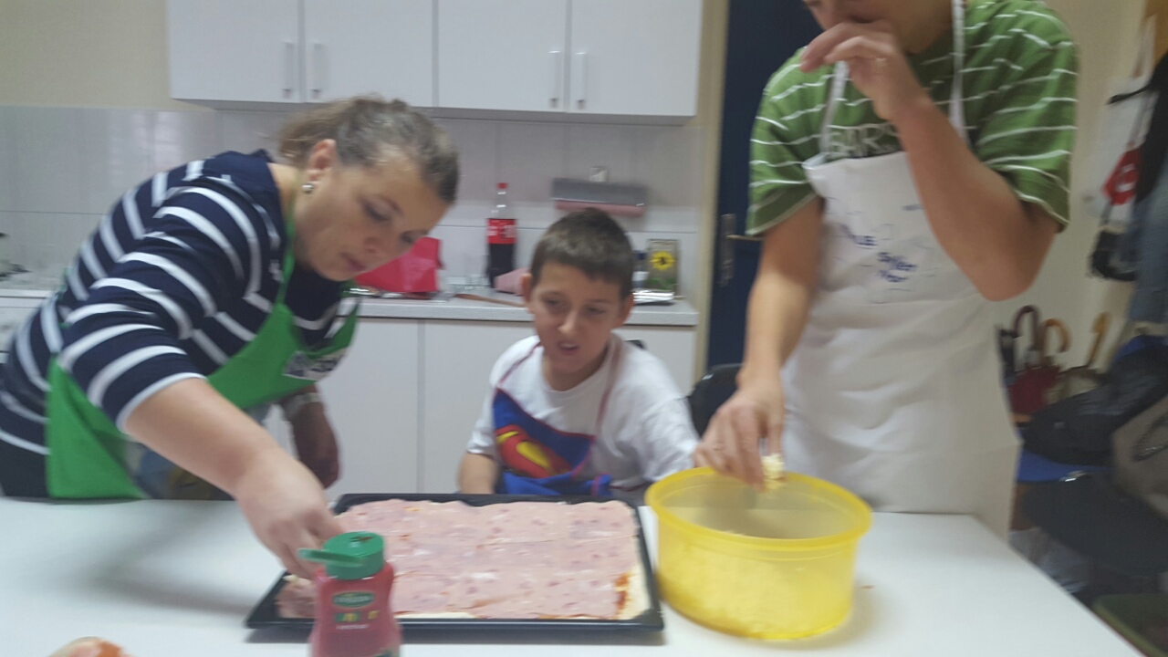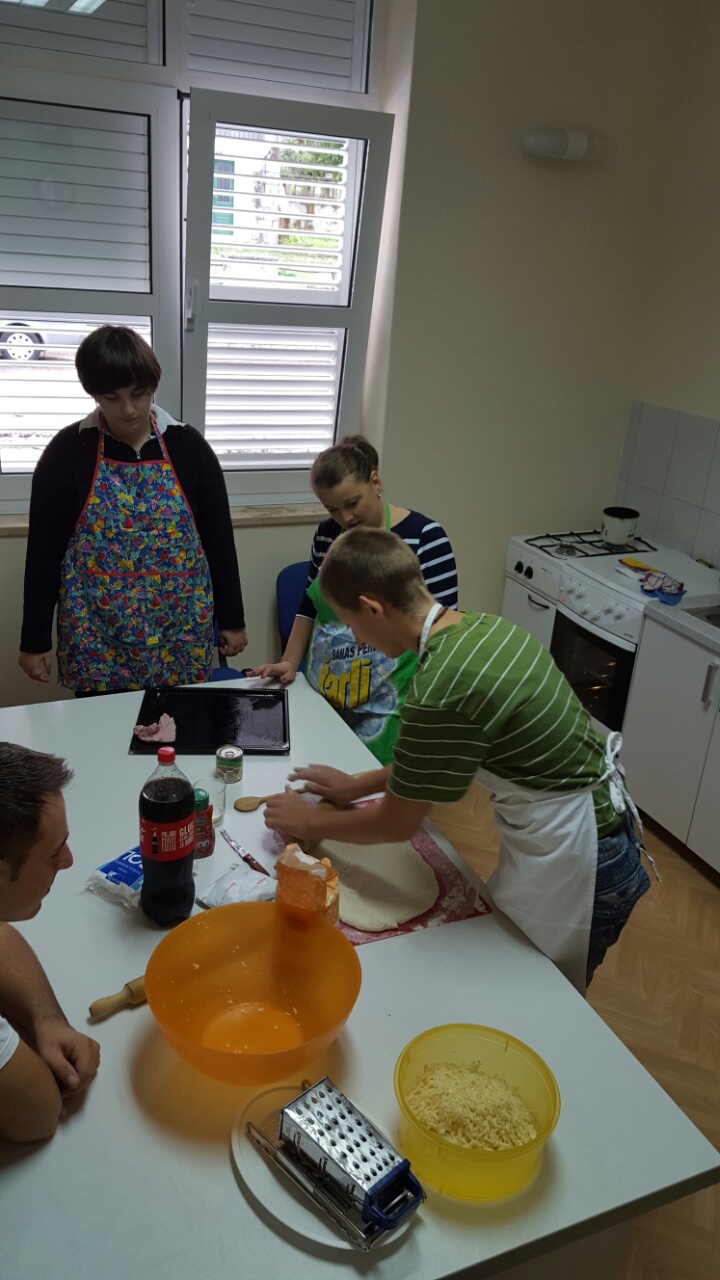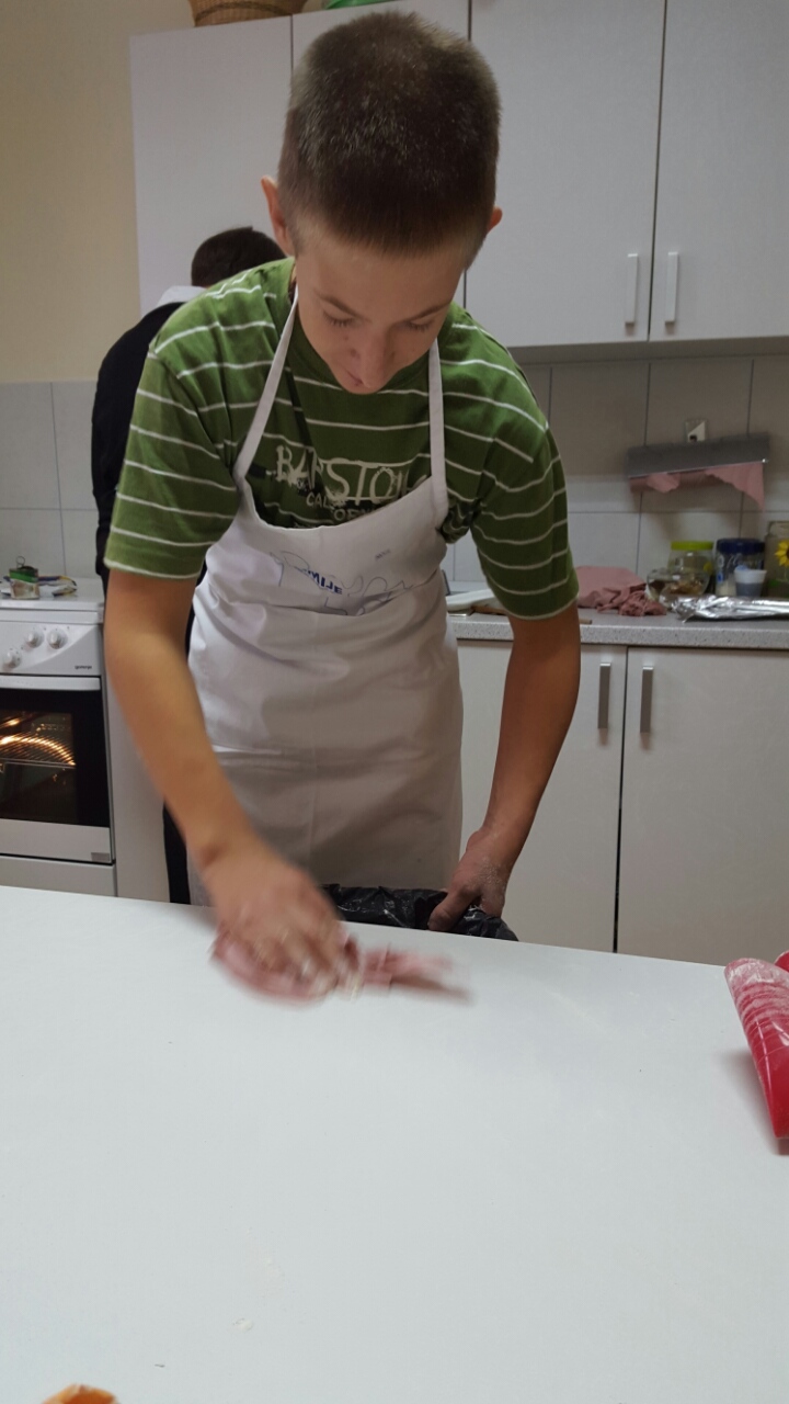 Učenici su sami obavili kupovinu u sklopu koje su odradili i sat matematike… Nije lako zbrojiti sve cijene, skupiti novce i prebrojati ostatak… Školsku čajnu kuhinju preplavili su mali kuhari u šarenim pregačama… Glavni chef Petar razvlačio je tijesto, Mladen je ribao sir, Anđela je mazala ketchup i prala suđe… Za čas se školom proširio miris slasne domaće pizze… Mali kuhari primali su posjete u svojoj kuhinji. Slijedeći zanosni miris u posjete su nam redom dolazili; osmaši, sedmaši, prva susjeda računovotkinja Stela, ravnateljica, tajnica… Treba naglasiti da su mali kuhari za sobom ostavili savršeno urednu kuhinju i oprano suđe! I na kraju zasluženo mali kuhari su marendali svoj specijalitet… Našao se tu i koji komad viška za goste po njihovom izboru… Tako su u slasnim komadima pizze uživali ravnateljica, tajnica i omiljena nastavnica Žana… A kako je to izgledalo iz prve ruke pogledajte sami… Nažalost gotovu pizzu nismo slikali… Nismo stigli... Kad smo se sjetili već je bilo kasno… Toliko je bila dobra…. Do sljedećeg puta pozdravljaju vas školski 3, 2, 1 kuhaj tim!