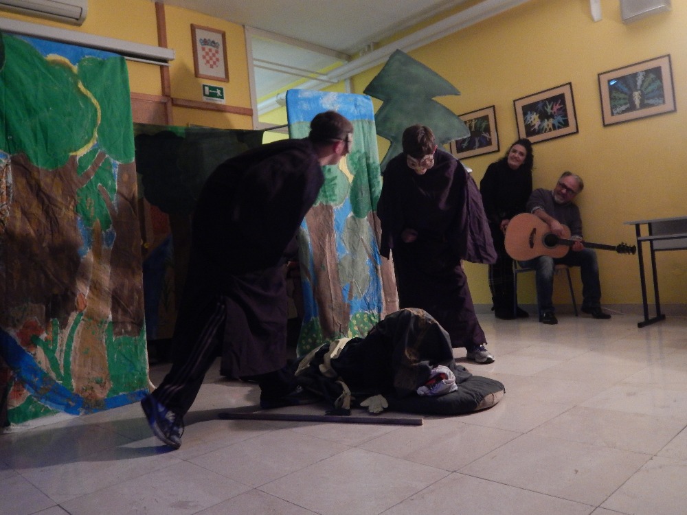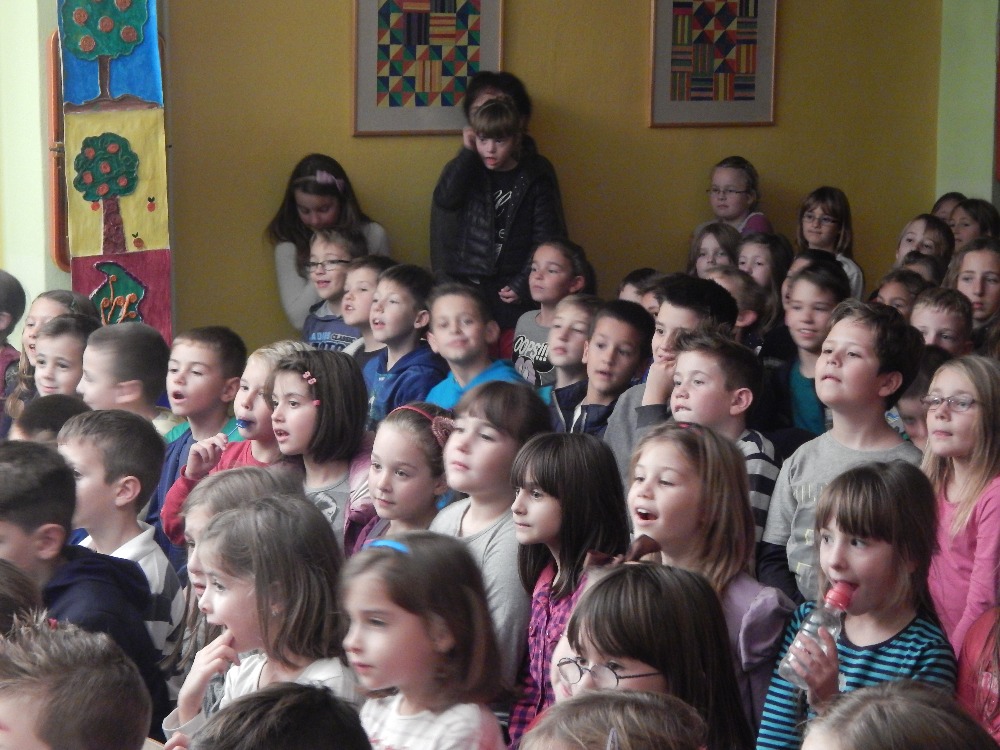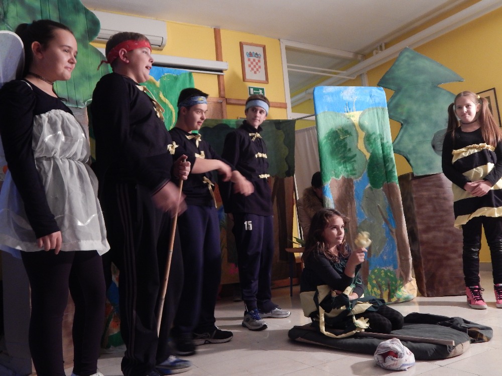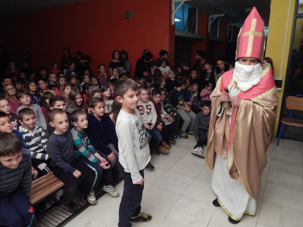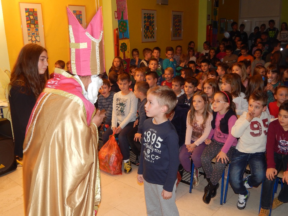 I večeras je bilo tako. Pogledali smo kazališnu predstavu “Mala zelena gusjenica“ i pritom uživali. I onda,kad smo mislili da je gotovo,iznenađenje. Začulo se zvonce i pojavio se željno iščekivani gost,sveti Nikola.