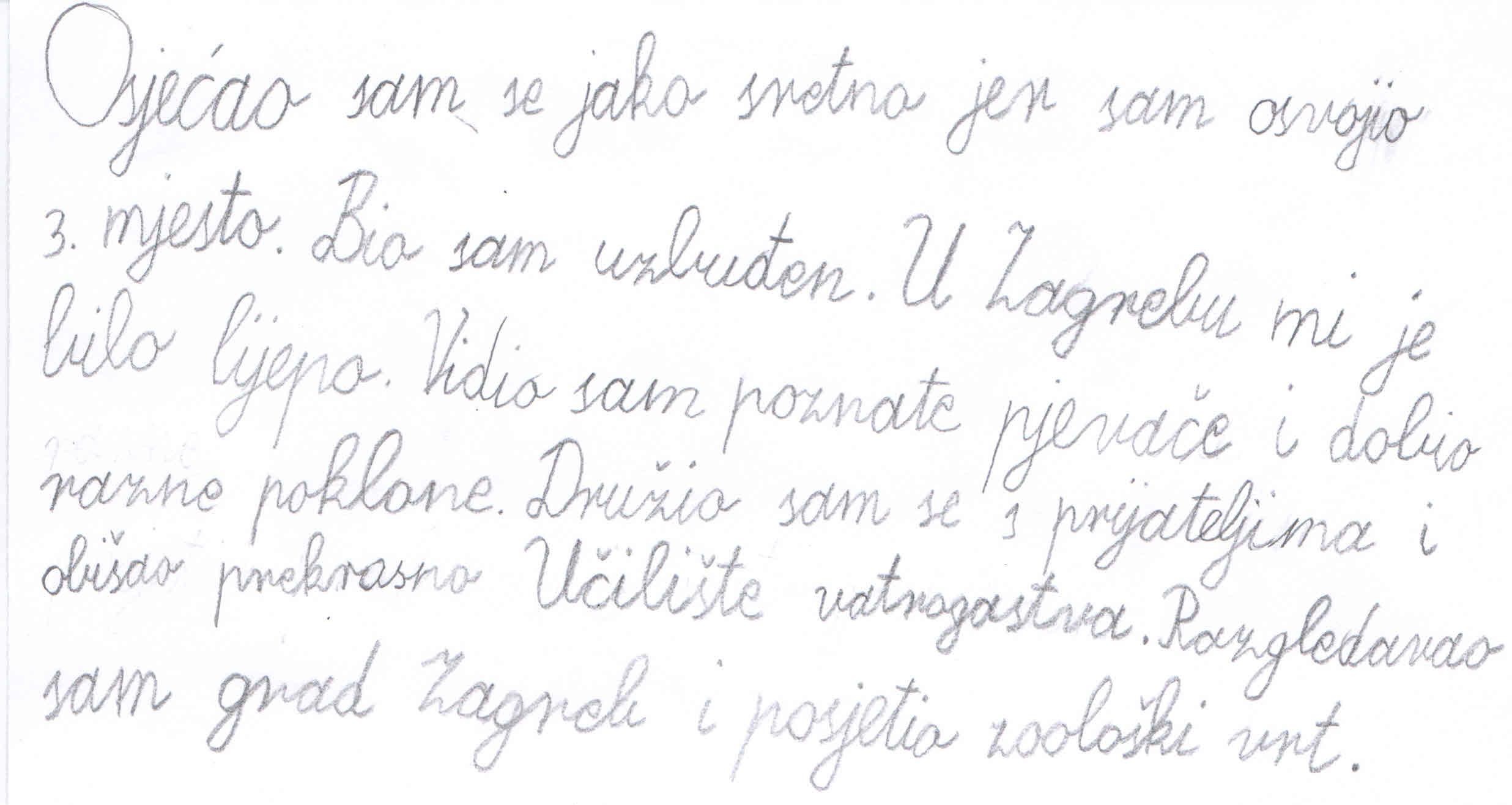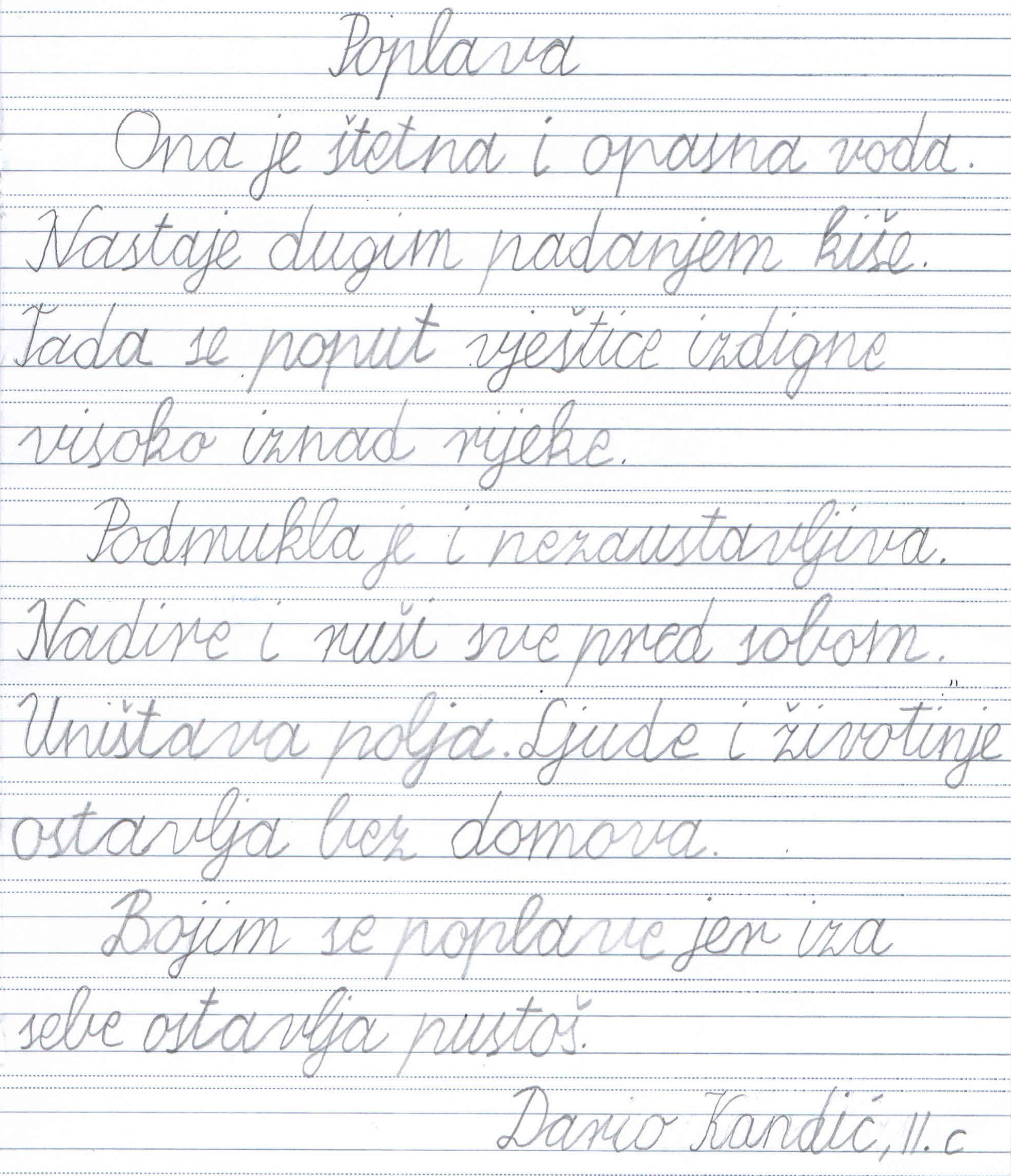 U mnoštvu pristiglih radova učenik II. c razreda naše Škole, Dario Kandić, dobio je 3. nagradu u kategoriji literarnih radova od 1. do 4. razreda. Učenik i mentorica Nada Ivanković zadovoljni su što su sastavkom „Poplava“ pripomogli edukaciji djece u razvijanju sigurnosne kulture.