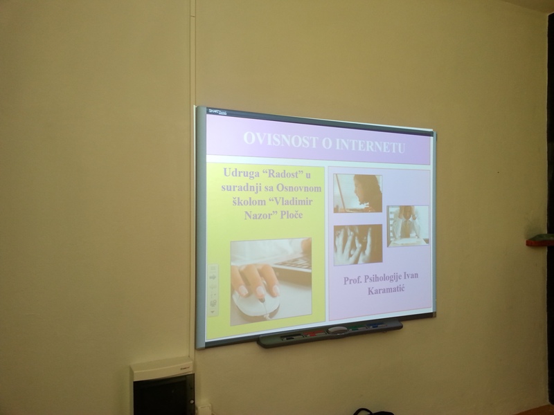 U okviru projekta "Radost u obitelji" prof. psiholog Ivan Karamatić održao je predavanje roditeljima petih razreda. Prema planiranim aktivnostima ovaj put se tema odnosila na opasnosti koje djeci prijete na internetu.