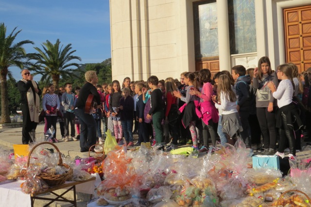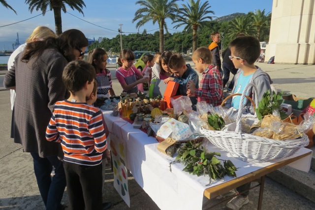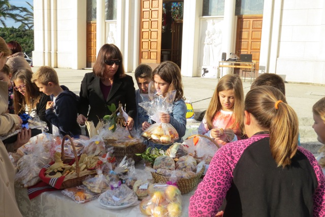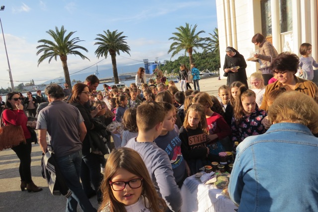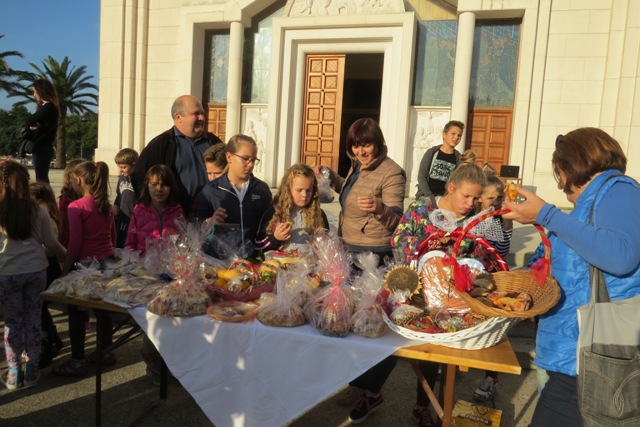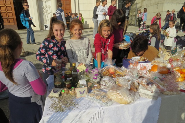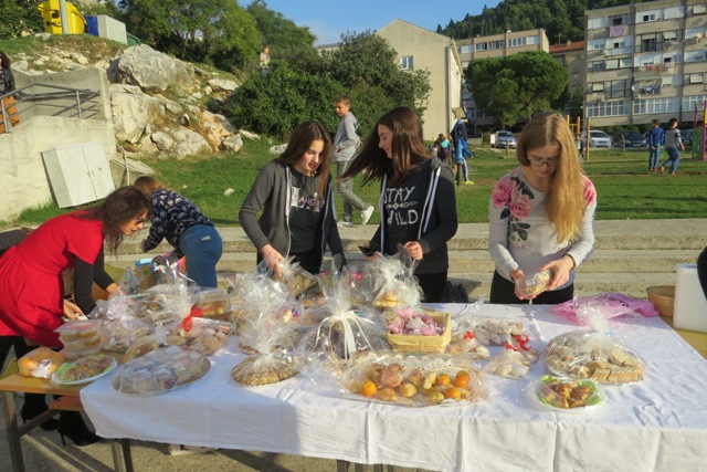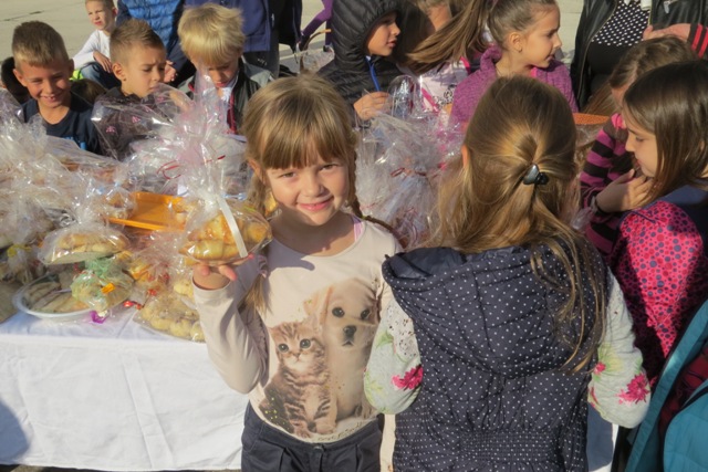 Sve je počelo blagoslovom i molitvom. Prodaja je bila bogata i raznovrsna, a stolovi ukrašeni domaćim kolačima, pecivima, voćem i marmeladama. Naši dragi učenici i učenice uz pomoć roditelja, posebno mama i baka, te svih djelatnika škole, organizirali su veselo druženje za naše sugrađane.