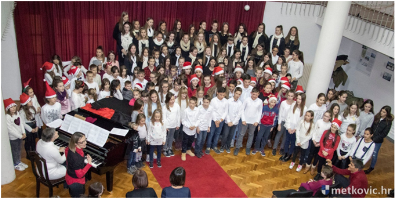 Dvanaesti put zaredom pjevački zbor naše škole sudjelovao je na Koncertu dječjih zborova povodom božićnih blagdana koji se održao 19.12.2016. u punoj Galerijii Glazbenog kulturnog središta u Metkoviću