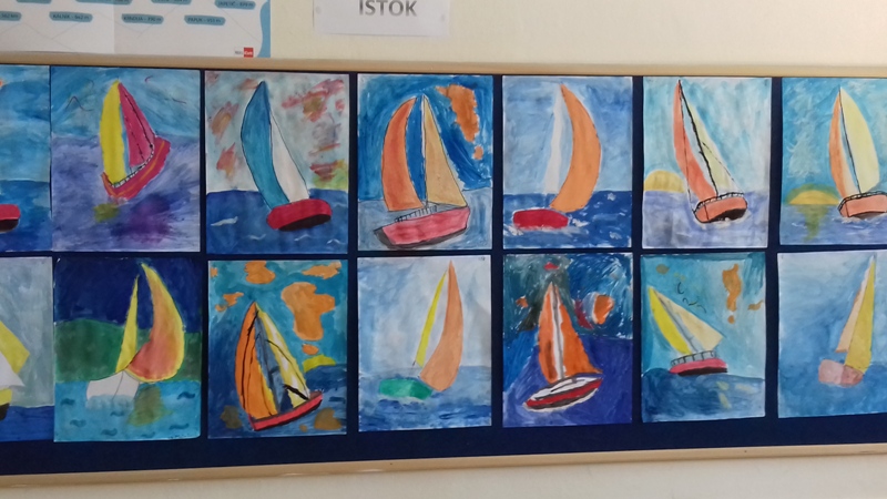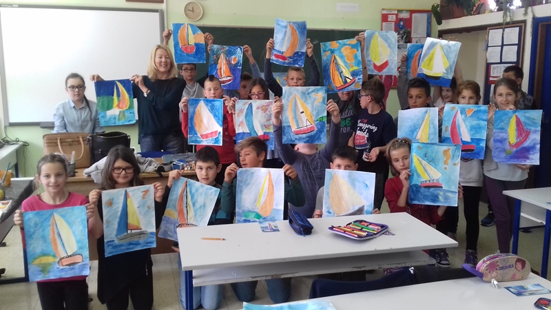 Na kraju školskog sata uslijedila je prezentacija slika punih jedrilica veselih boja nastalih kistom učenika pod strpljivim vodstvom naše gošće.
