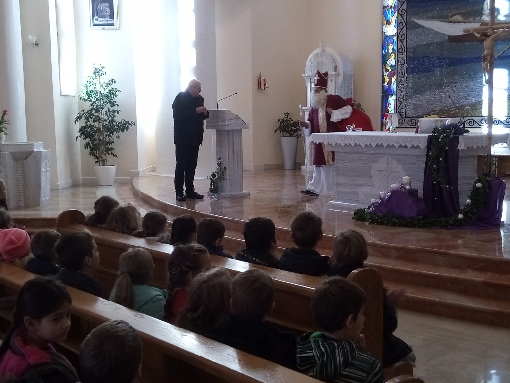 06. 12. 2017. proslavi svetog Nikole priključio se i pločanski župnik don Ante Antunović koji je pozdravio djecu i naše djelatnike u crkvi. Dječji zbor pod ravnanjem profesorice Jasne Krilić popratio je darivanje djece.