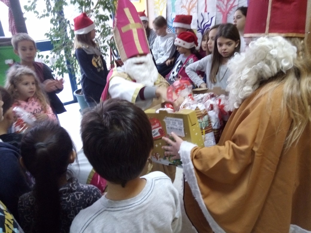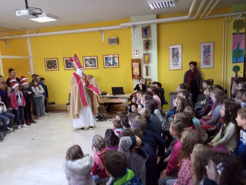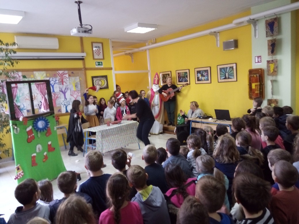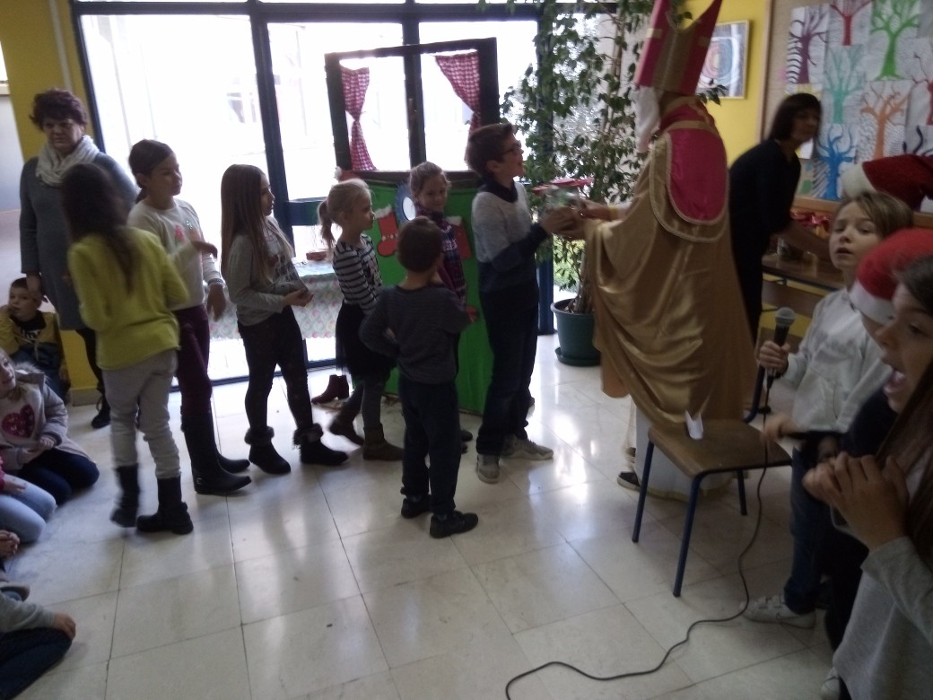 U školi se svečanost nastavila prigodnim programom koji je vodila učiteljica Nada Ivanković. Uz recitaciju četvrtog razreda, učenici su odgledali i krasnu priredbu u izvedbi grupe „Maslačak“ koju su pripremile učiteljice Duška Ivičević i Gordana Vuletić. Božićne pjesme otpjevao je mali školski zbor pod ravnanjem Selme Oršulić. Na kraju je sveti Nikola bio darežljiv, pa su djeca ponovno dobila dar, a krampus nije imao nikakvog posla u školi ove godine.
