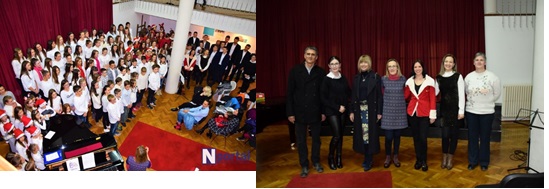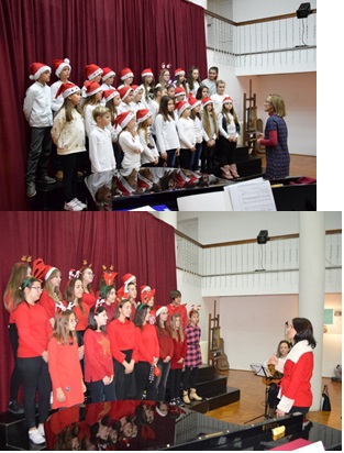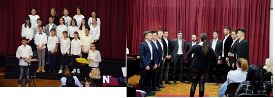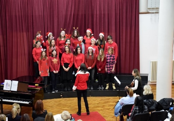 Zbor je otpjevao višeglasno dvije pjesme pod vodstvom nastavnice Helene Decovski Ćavar, uz gitarsku pratnju nastavnice Ivane Pudar Pećar. U prvoj pjesmi „ I have a dream „ solističku dionicu pjevala je Lara Grgurinović (8.b ) , dok je u drugoj pjesmi „ Happy X-mas „ solo pjevalo dvoje solista, Nikola Batinović (8.b ) i Karla Grgurinović (8.b ).