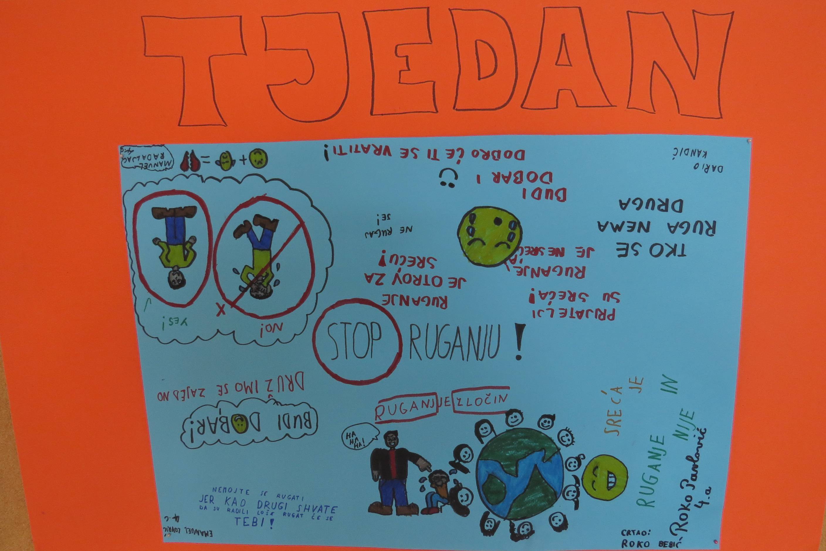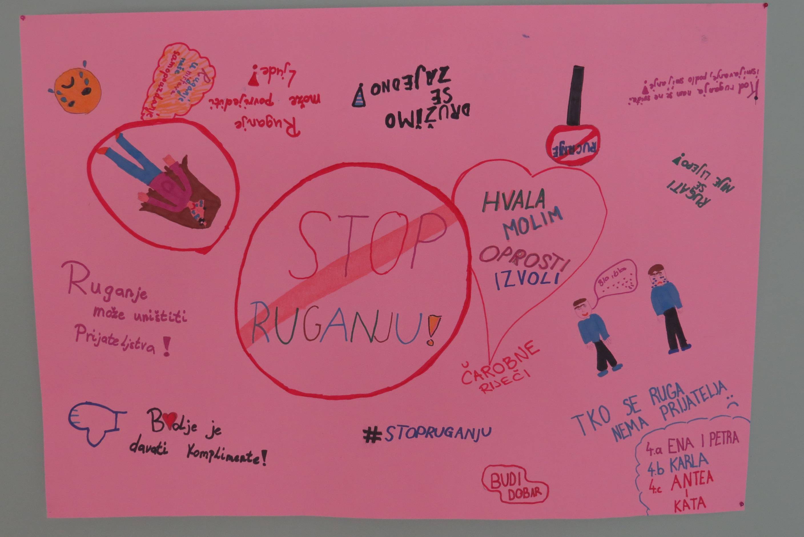 Učenici četvrtih razreda su poslije parlaonice o ruganju napravili tri plakata STOP RUGANJU