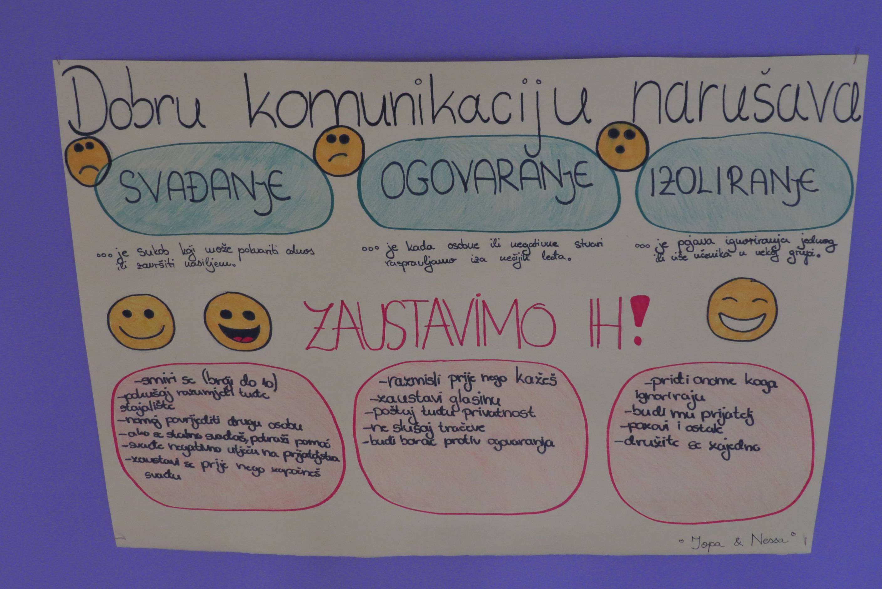 Učenice osmog razreda Josipa Glamuzina i Vanessa Barbir izradile su plakat ŠTO NARUŠAVA DOBRU KOMUNIKACIJU (plakati se mogu vidjeti na ulazu škole)