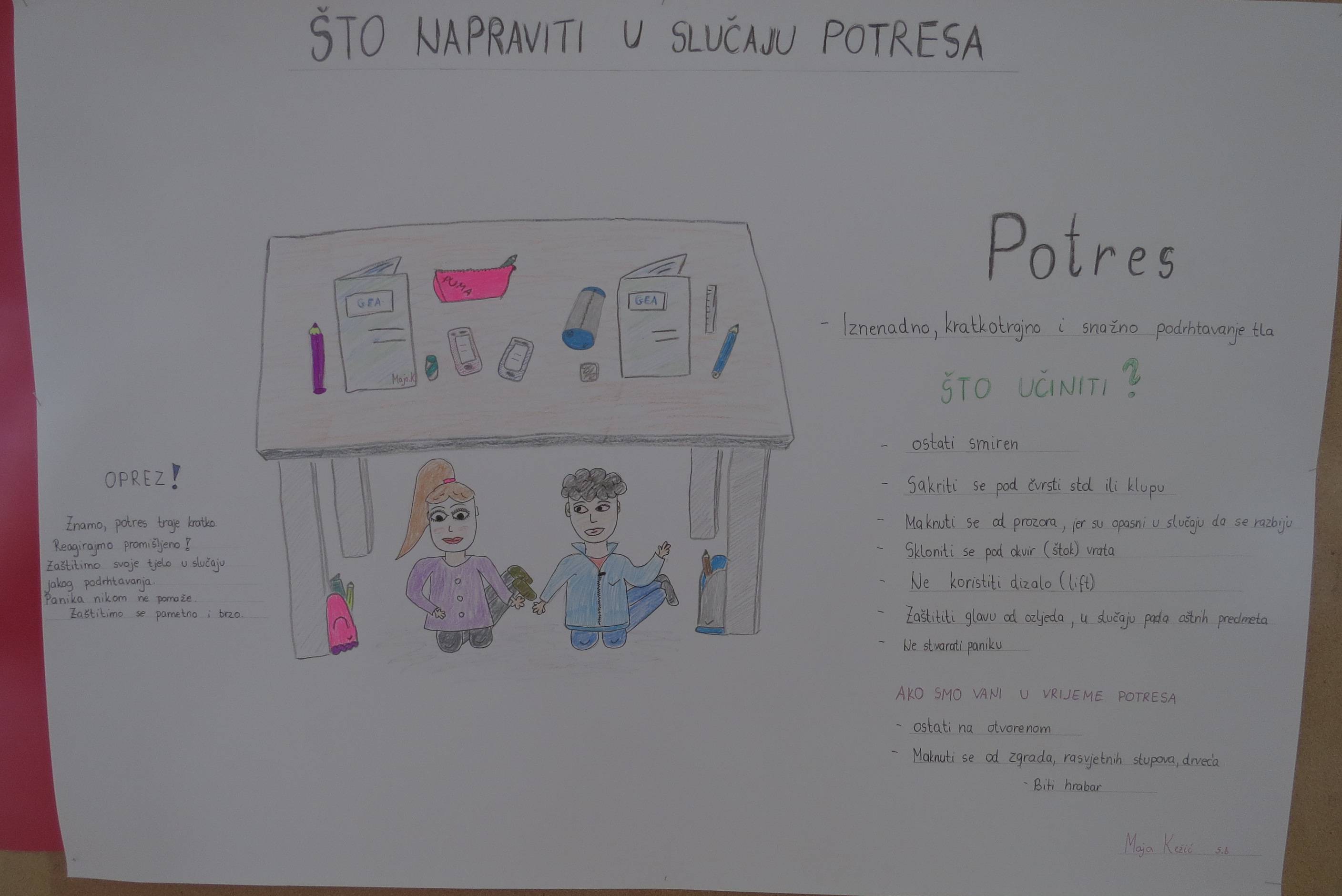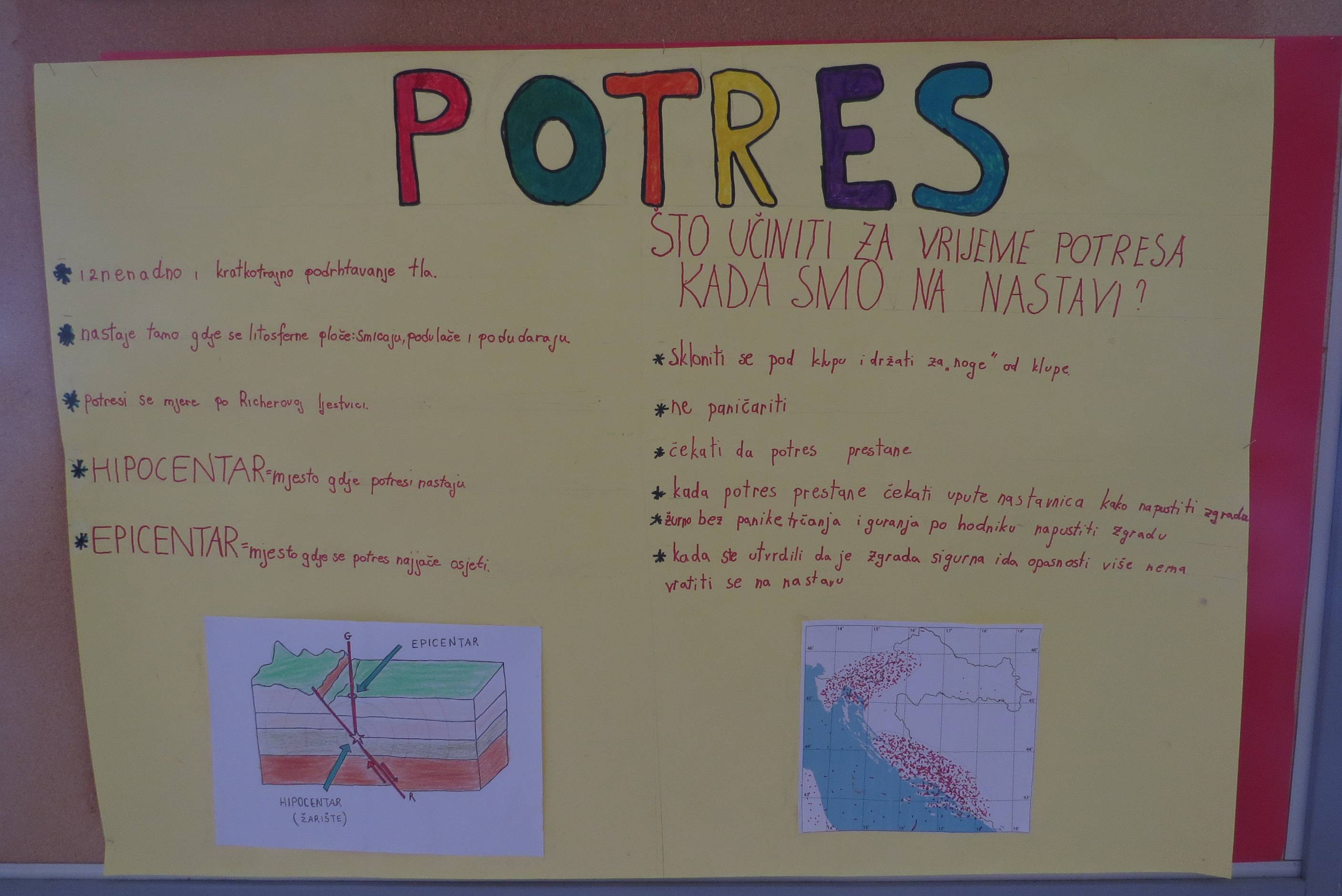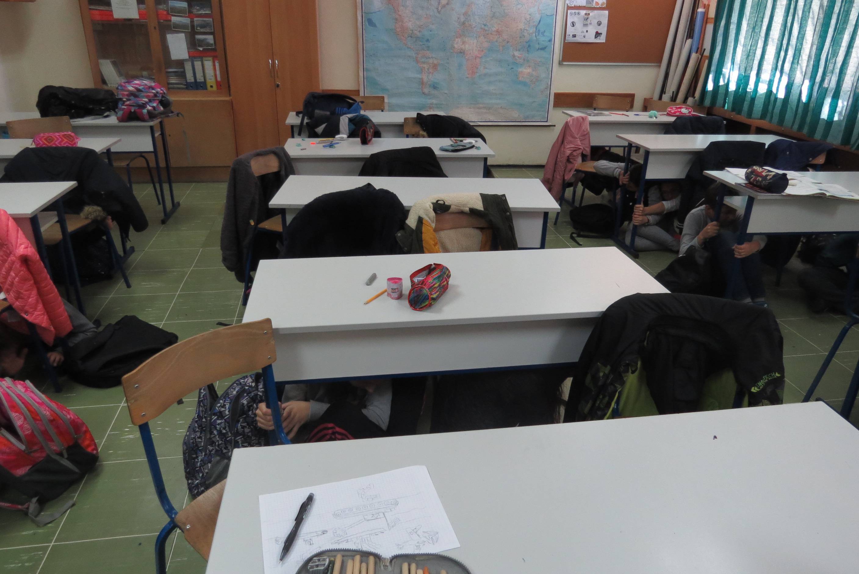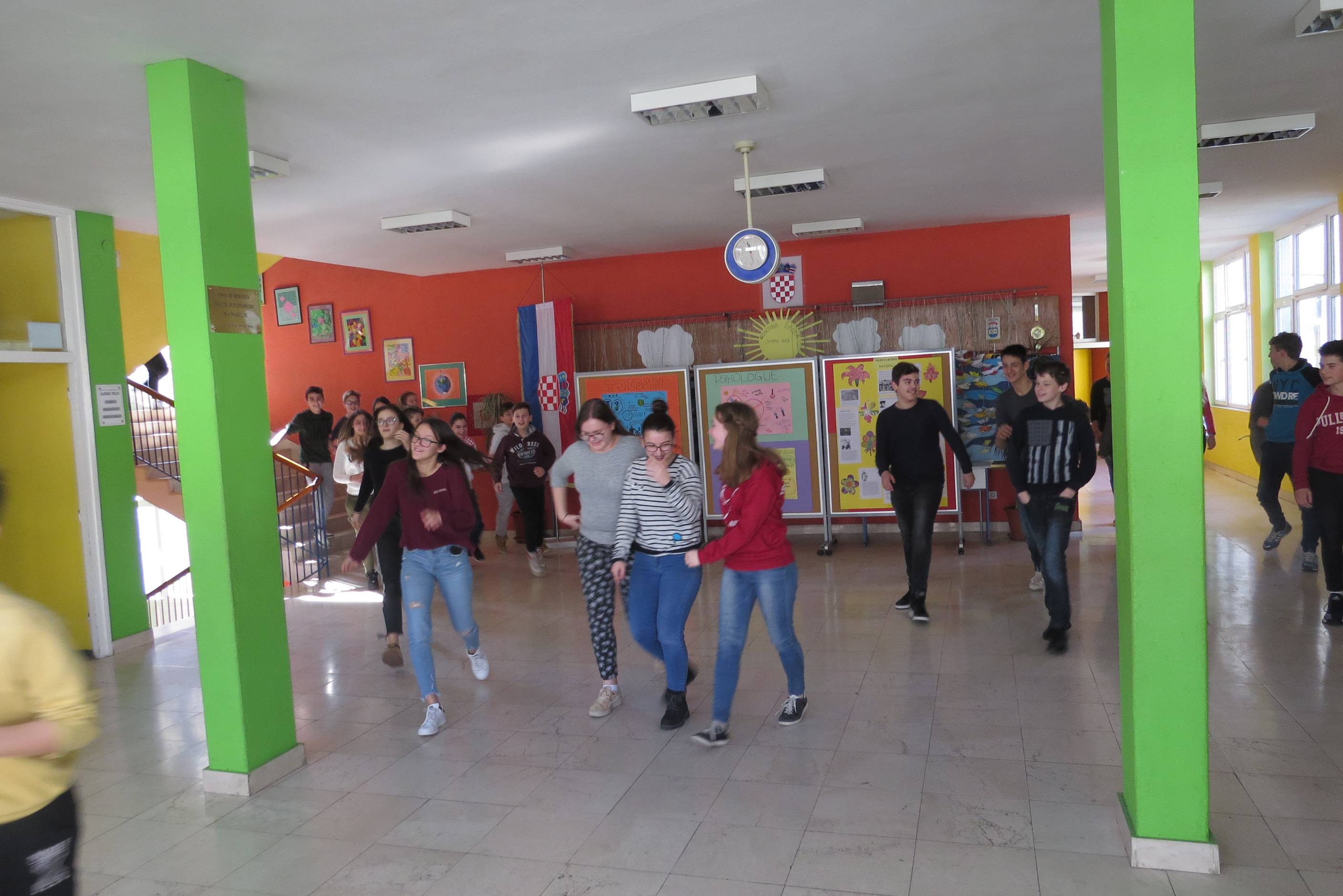 U našoj školi se u 12:00 održala protupotresna vježba u kojoj su sudjelovali učenici petih razreda na čelu s nastavnicom Monikom Bušurelo.