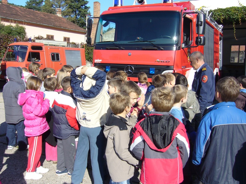 Nakon što su u svojim učionicama naučili razlikovati vatru od požara, te uočili opasnost i štetne posljedice požara, učenici II. razreda u pratnji svojih učiteljica uputili su se, dana 28.10. 2010. godine, u posjet vatrogasnoj postaji.