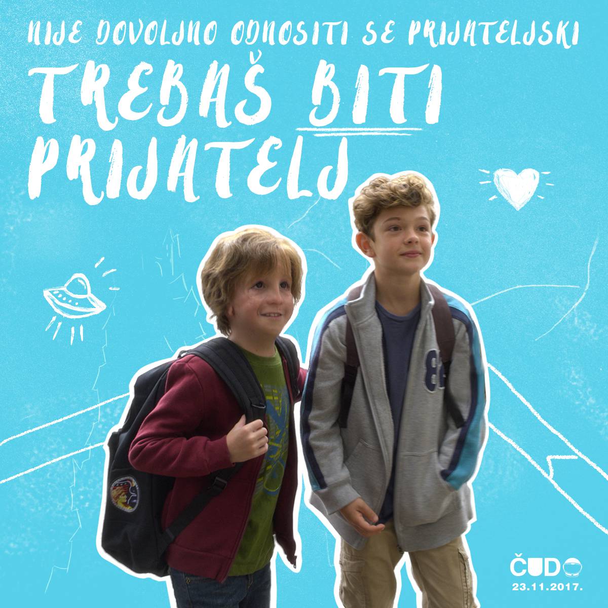 Glavni glumac filma „Čudo“ Jacob Tremblay glumi dječaka unakaženog lica Auggieja Pullmana, koji je zbog genetske bolesti prošao preko 20 operacija i školuje se kod kuće. Roditelji (koje glume Julia Roberts i Owen Wilson) ga upišu u školu u 5. razred, gdje se suočava s novom sredinom, strahom od izrugivanja i neprihvaćanja. Film je preporuka je za sve uzraste, jer potiče na razmišljanje, ljubaznost, ravnopravnost i prijateljstvo, te da na svijet gledamo drugačijim očima.