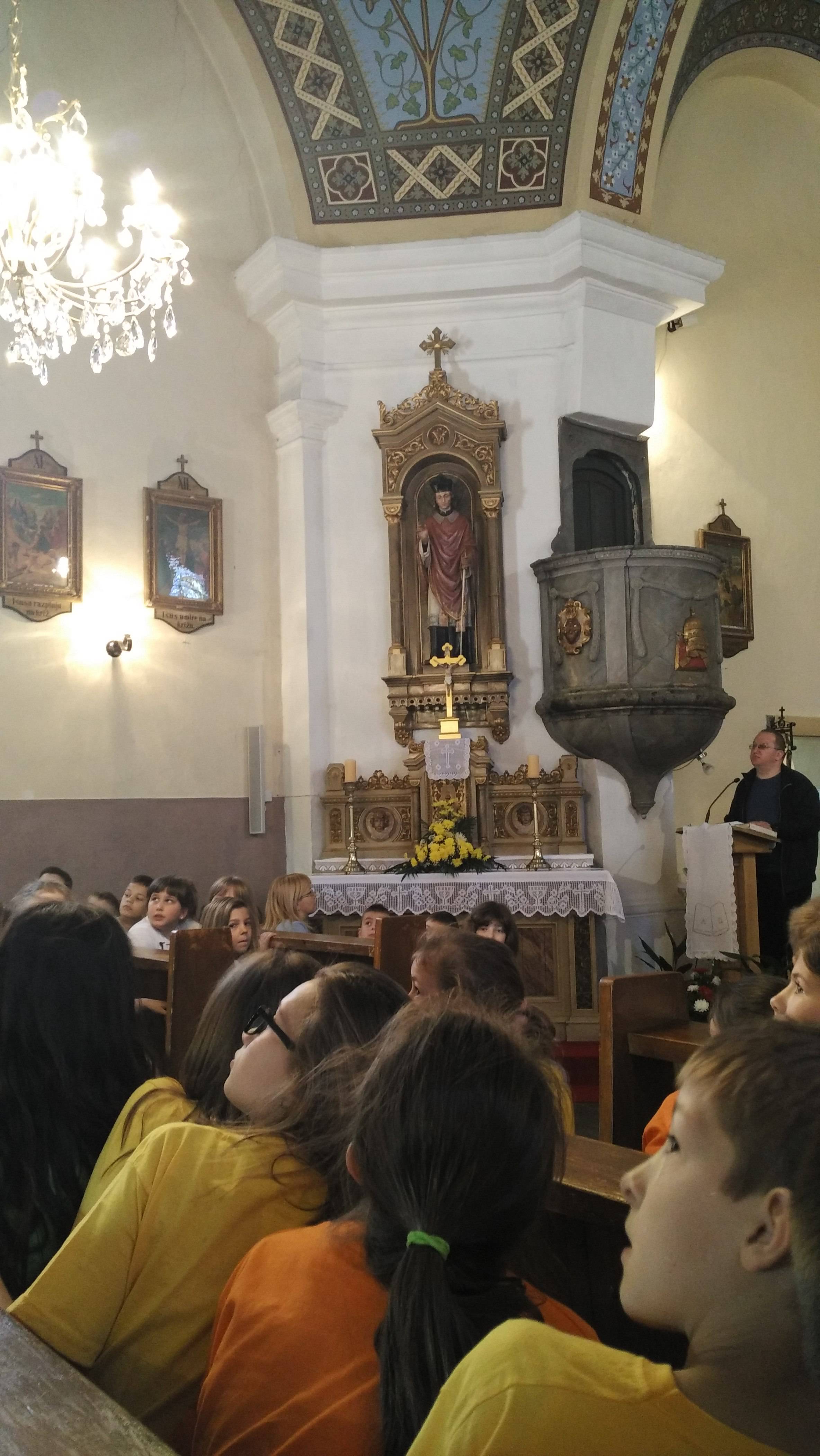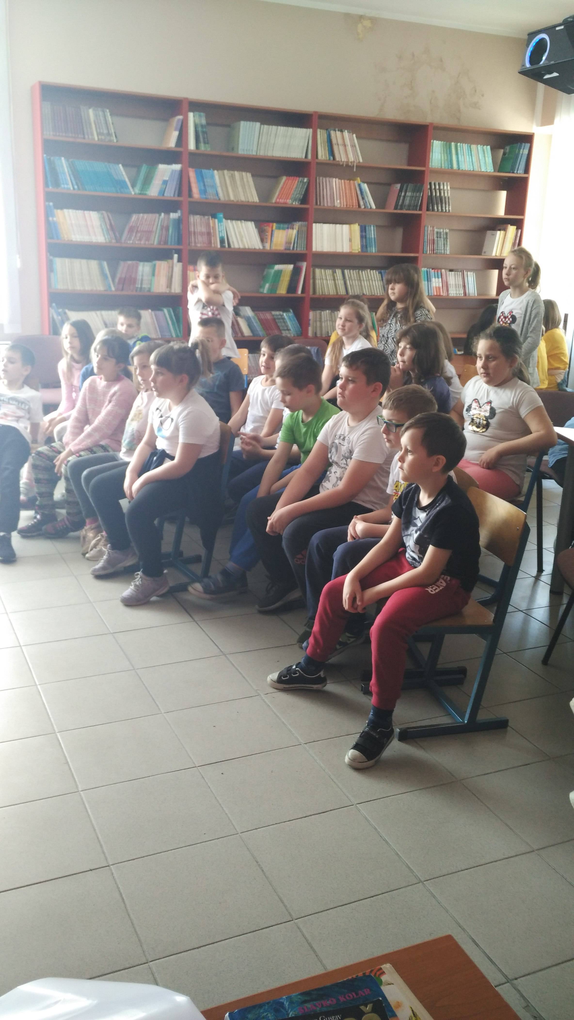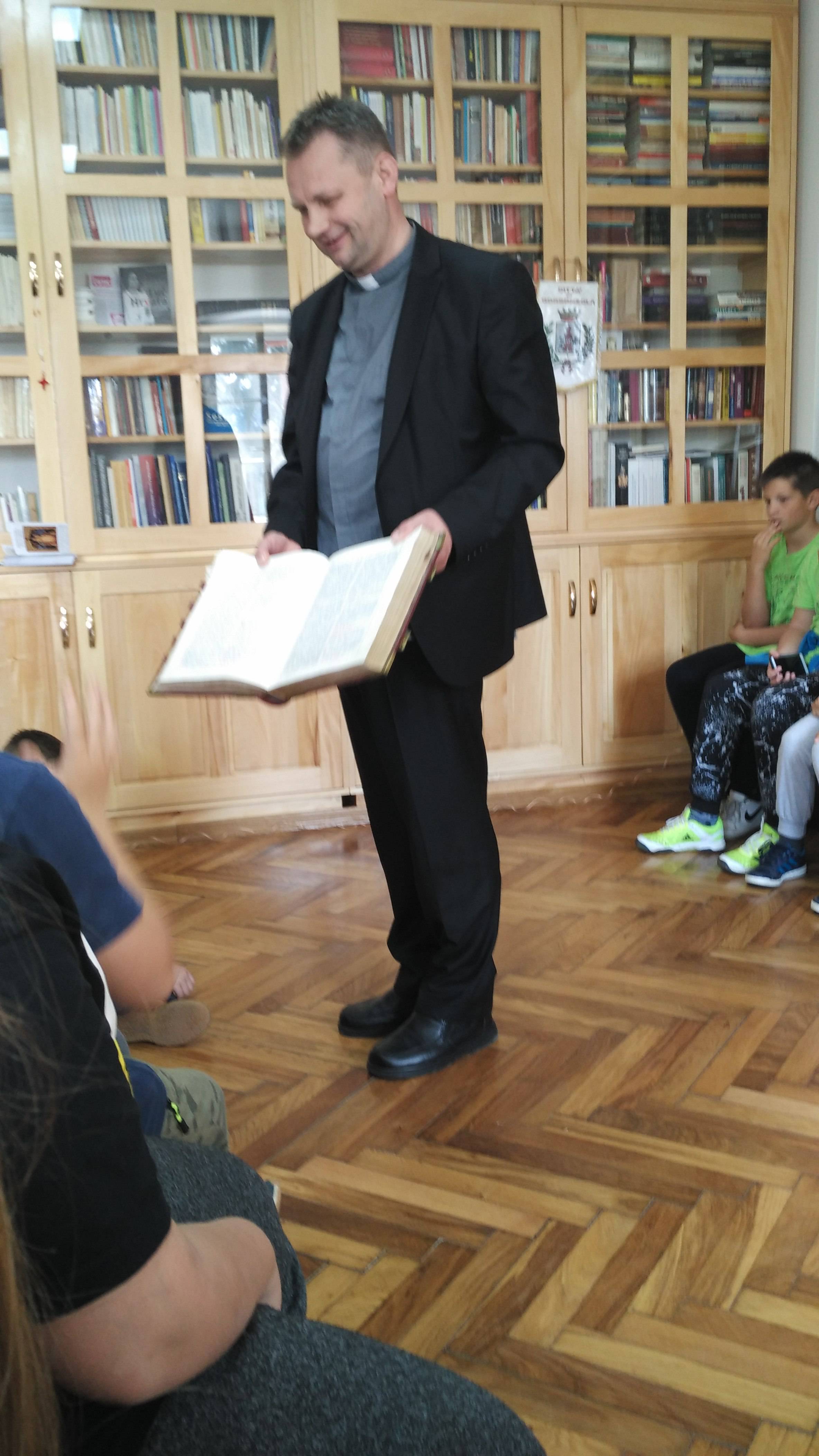 Predavanje u knjižnici župnog dvora u Oštarijama. Velečasni Ante Luketić potrudio se zainteresirati i upoznati djecu s bogatom prošlošću ovog kraja.
