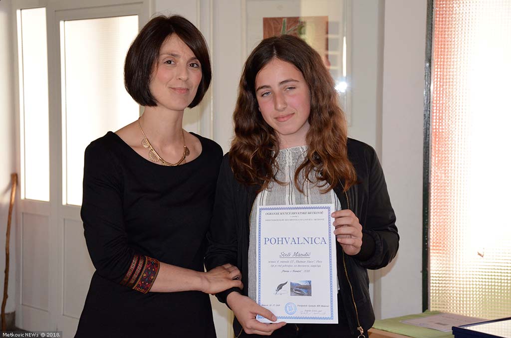 Ponosni smo jer su se na svečanosti čitali radovi dviju naših učenica. Nina Jončić (8.r.) na poticaj svoje nastavnice Ivane Pudar Pećar napisala je pjesmu „Slike s Neretve“, a Stela Mandić (6.r.) na poticaj nastavnice Marine Burđelez pjesmu u prozi „Slike moje rike“. Prosudbeno povjerenstvo radove naših učenica istaknulo je i pohvalilo.