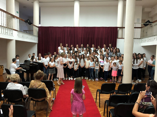 Zbor naše škole je otpjevao dvije pjesme i to afričku zulu pjesmu dvoglasno a cappella pod nazivom „ Nginisiponono „ uz tjelopokret, te pjesmu od Đele Jusića „ Jedan dan „ također dvoglasno i uz klavirsku pratnju našeg učenika i člana zbora Nikole Batinovića ( 8. B ).