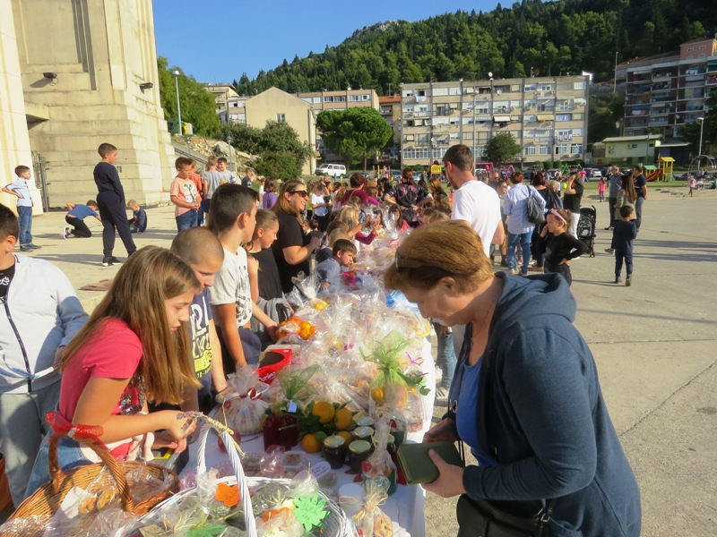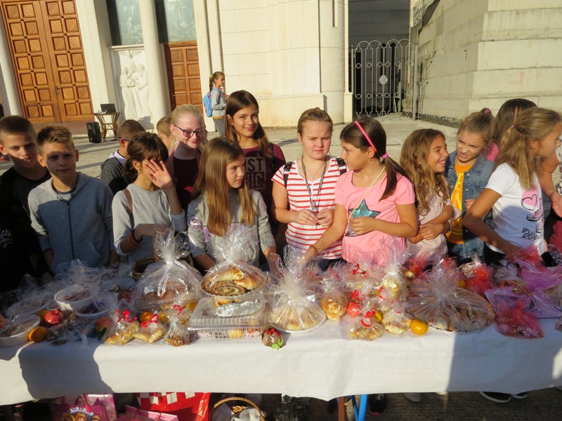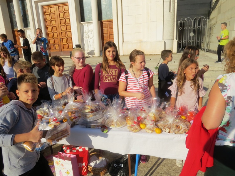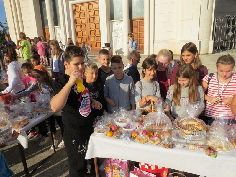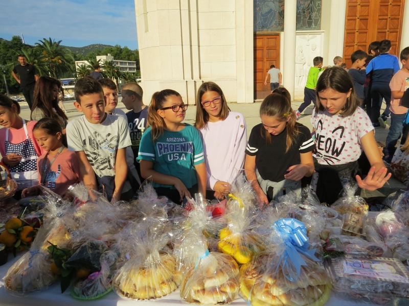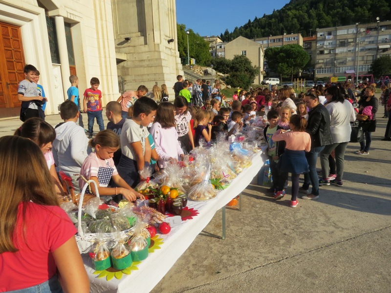 Naši vrijedni učenici uz pomoć svojih učiteljica i učitelja ukrasili svoje stolove domaćim kolačima, pecivima, voćem i marmeladama, a naš domaćin Don Ante Antunović je uz molitvu zazvao blagoslov na sve darove koje su djeca izložila.