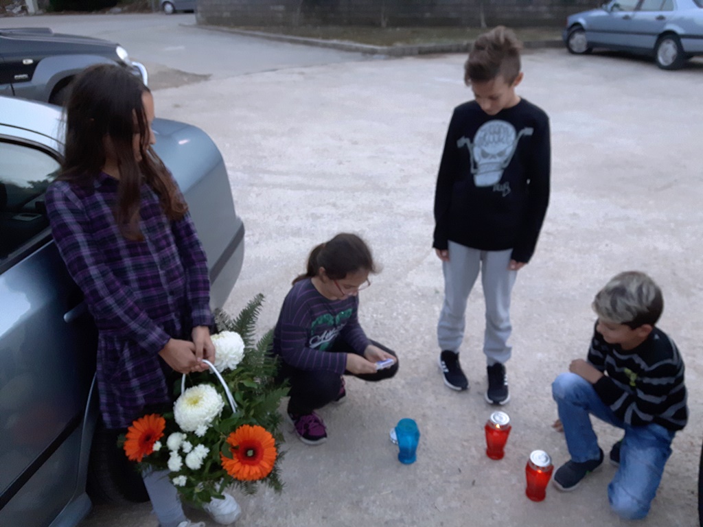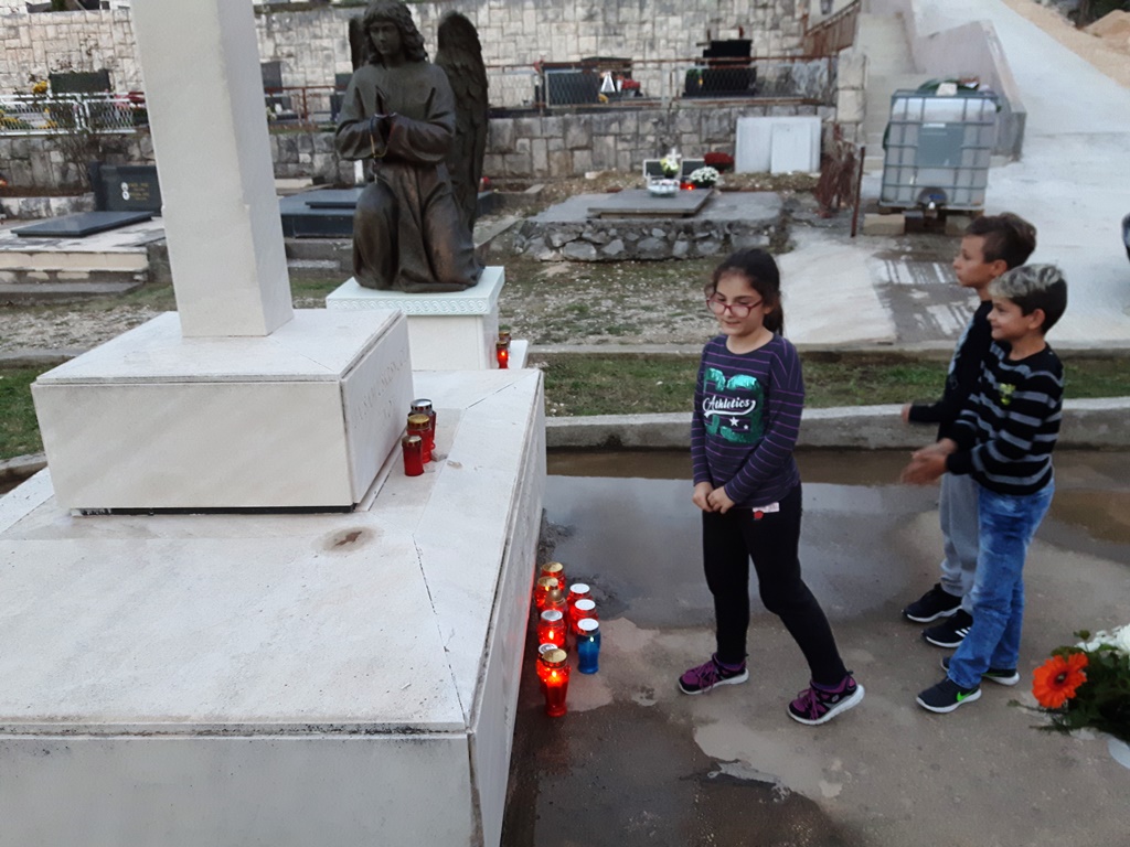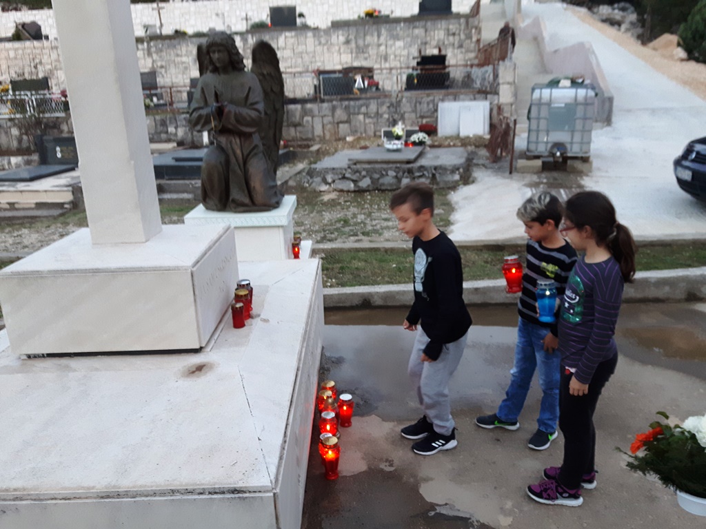 Učenici trećih razreda naše škole posjetili su gradsko groblje. U pratnji učitelja Zorana Lončara učenici su dostojanstveno obilježili dane kada se prisjećamo naših najmilijih koji nisu više s nama. Paljenjem svijeća i molitvom uz centralni križ, učenici su iskazali poštovanje svim preminulima koji počivaju na Laništini.