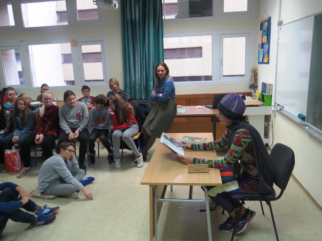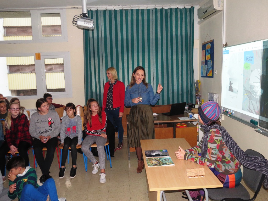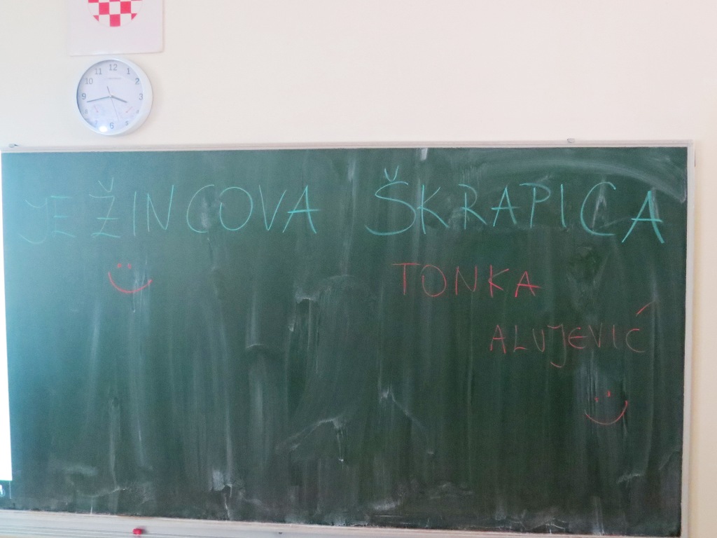 U srijedu je u našu školu došla draga gošća iz Splita, spisateljica Tonka Alujević. Tom prigodom organiziran je književni susret s učenicima petih razreda kojima je autorica predstavila svoju prvu priču namijenjenu djeci - JEŽINCOVU ŠKRAPICU.