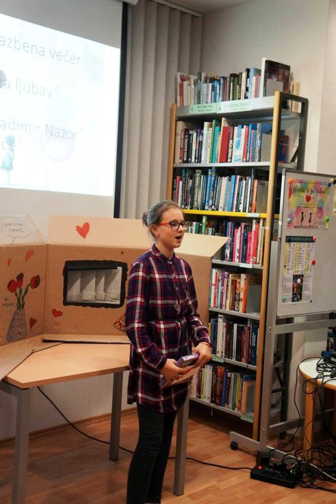 Učenici OŠ "Vladimir Nazor" u Pločama, sa svojim nastavnicama Ivanom Pudar Pećar, Marinom Burđelez i Anom Zmijarević (Aktiv Hrvatskog jezika) uz tehničku i tonsku podršku šk. knjižničara, pripremili su nam još jednu predivnu poetsko-glazbenu večer posvećenu zaljubljenima, pod nazivom "Hvala ti za ljubav". Ovo je već sedma godina uprizorenja Valentinova od strane naših učenika i njihovih nastavnica. Veliko HVALA Narodnoj knjižnici Ploče!!!