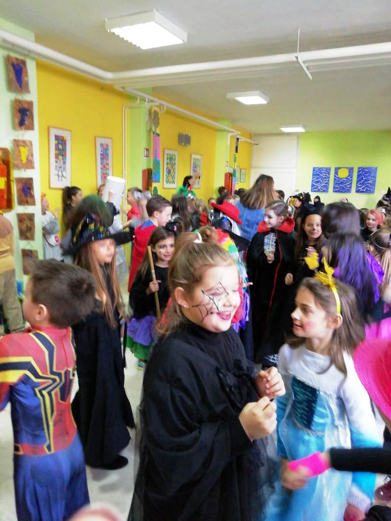 Nakon odmora i okrepe maškarana povorka krenula je na maskenbal u holu škole.