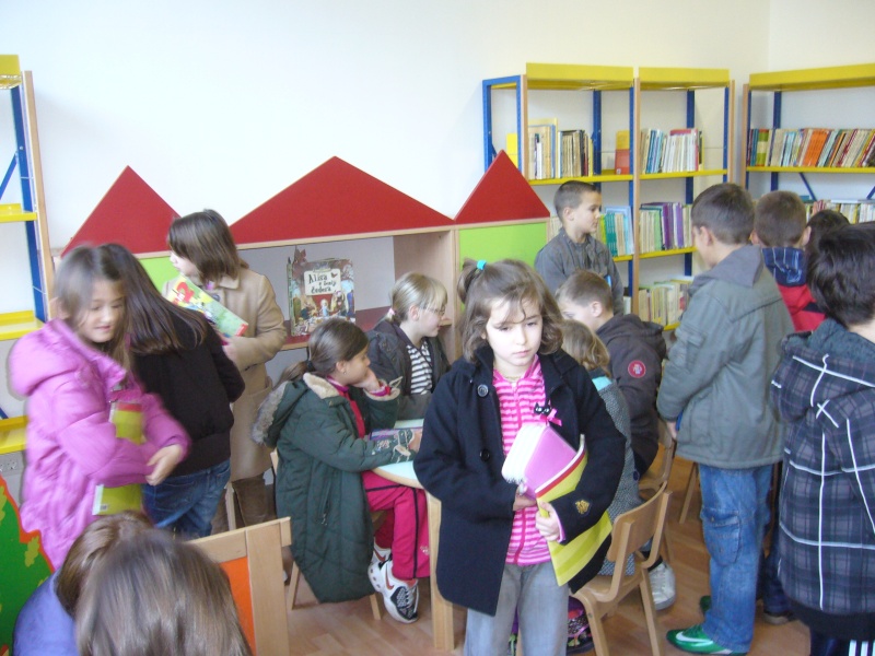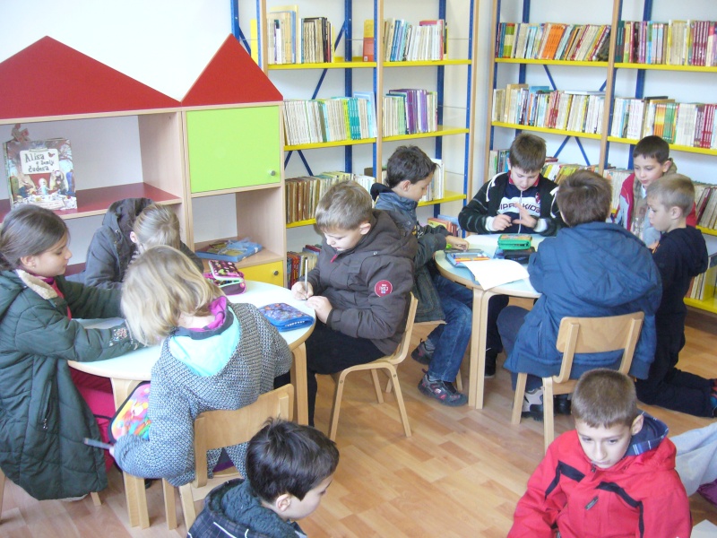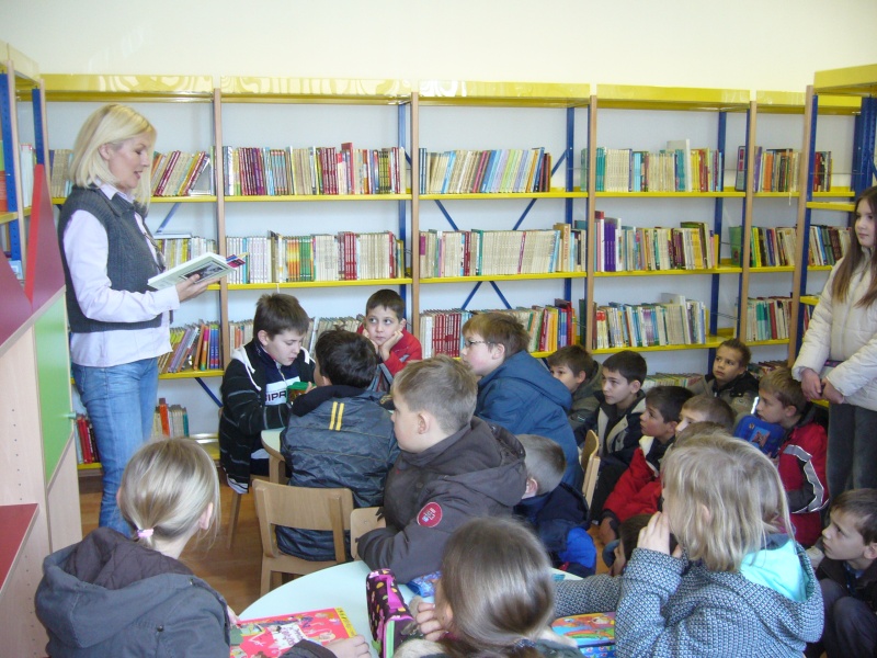U novootvorenom prostoru knjižnice srdačno su dočekani od ravnateljice gđe. Anite Zmijarević i knjižničara Jure Karamatića. Učenici su prošetali između polica punih knjiga. Upoznati su sa načinom rada knjižnice i mogućnostima posuđivanja knjiga, cd-ova, VHS-ova.