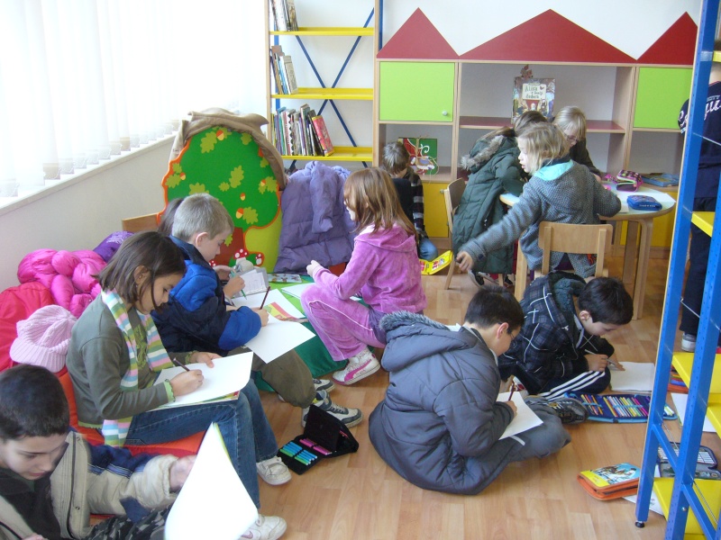 Da se u knjižnici samo ne čitaju knjige pokazali su naši učenici ilustrirajući pročitane pjesme. Svoje vrlo lijepe i zanimljive ilustracije ostavili su u knjižnici kao zahvalnost za ugodno gostoprimstvo.