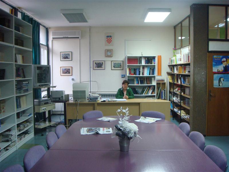Školska knjižnica zauzima prostor od 50 m2, a veličina čitaonice je 17 sjedećih mjesta. Knjižni fond sastoji se od oko 8000 svezaka knjiga. Neknjižnu građu čine videokasete, cd-ovi, uz računalnu opremu, Tv i Av opremu. Oko 1000 svezaka knjiga je stručna literatura za učitelje. Knjižnica ima 6 časopisa za učenike te 3 za učitelje.