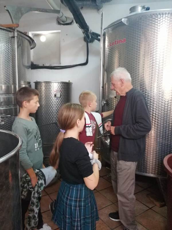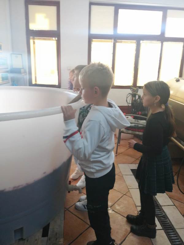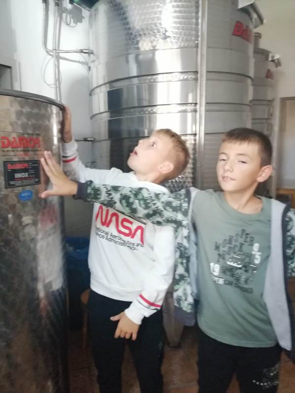 Učenici su sa zanimanjem slušali njegovo izlaganje, a posebno su ih fascinirali ogromni tankovi puni raznih, mladih vina u zrenju.