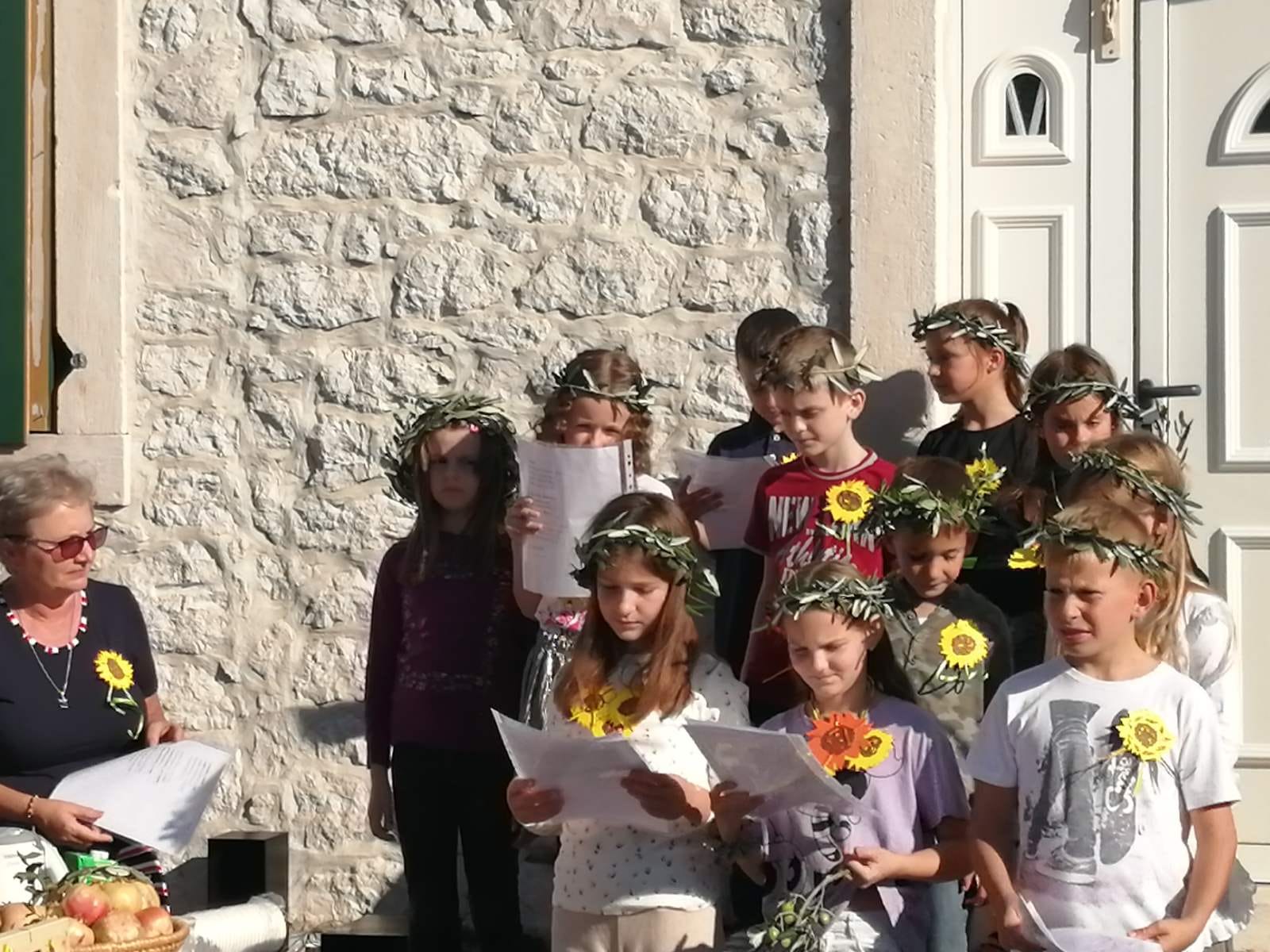 Djeca su sa svojim učiteljicama i tetom pripremila malu svečanu priredbu te pjesmom, recitacijama, igrokazom i plesom zahvalili Majčici Zemlji na svim plodovima koje nam je podarila kao i na vrijednim ljudskim rukama koje su svemu pridonijele.