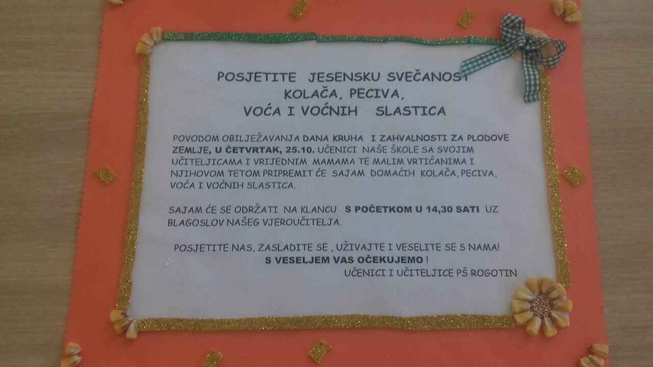 JESENSKA SVEČANOST KOLAČA, PECIVA, VOĆA I VOĆNIH SLASTICA U PŠ ROGOTIN.