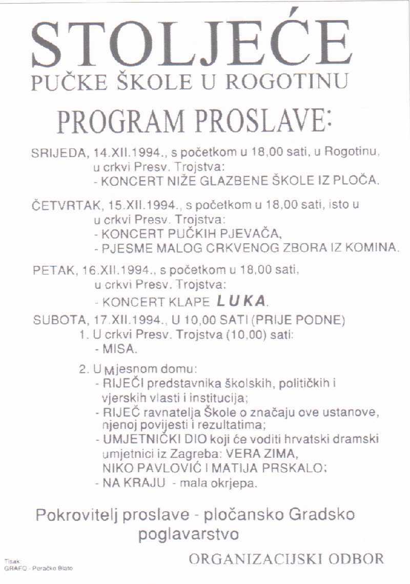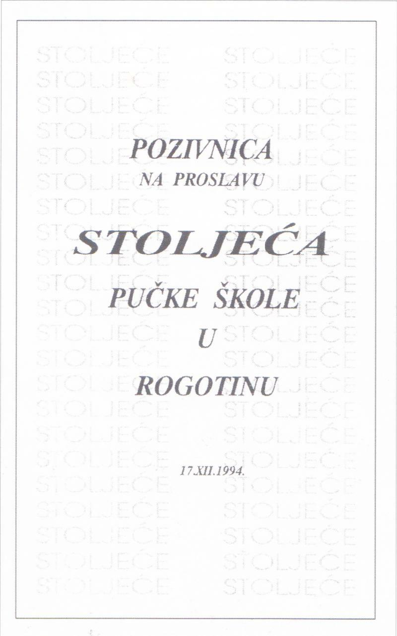 1994./95. navršilo se 100 godina od osnutka Pučke škole u Rogotinu.