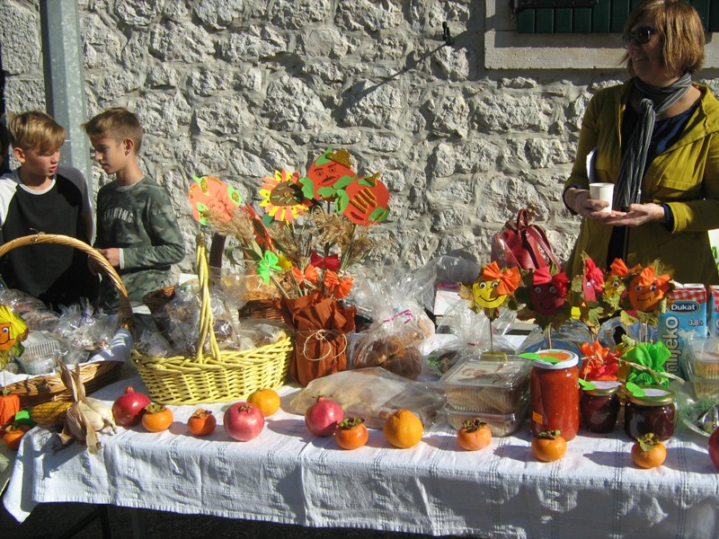 Kao i svake godine stolovi su bili bogatI raznovrsnim ukusnim pecivima, kolačima, domaćim kruhom, voćem te proizvodima od voća i povrća, a ljepotu su dopunili raznovrsni dječji radovi.