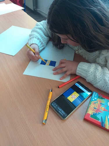 Učenici su potom izrađivali likovne radove sa simbolima partnerskih zemalja. Nakon toga učenici su učili portugalski jezik i neke najosnovnije riječi te su snimili video pozdrav za sve naše partnere (na engleskom i portugalskom jeziku) u kojem su vidljivi njihovi likovni radovi sa simbolima partnerskih zemalja.