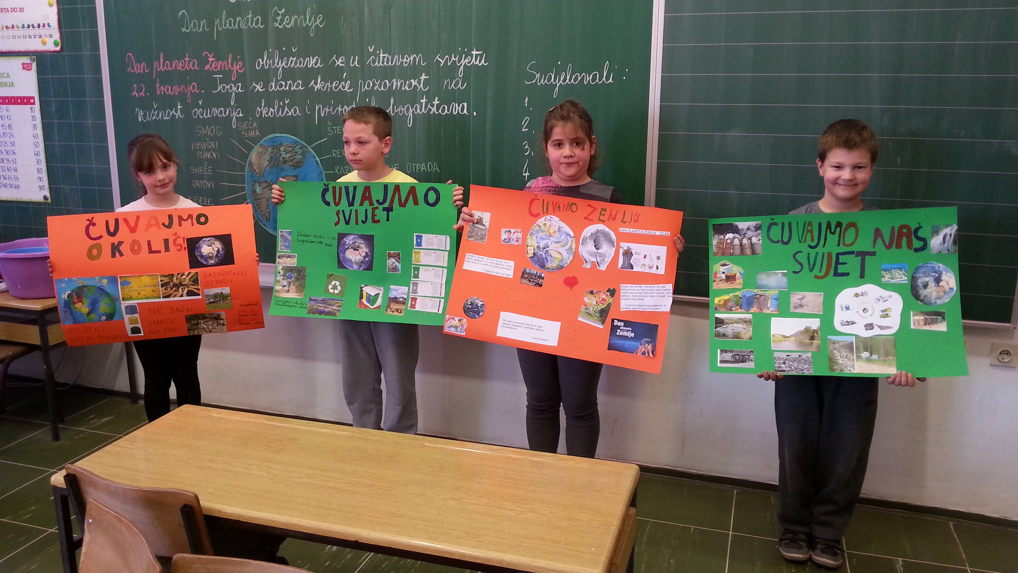Ovako je danas , Zemlji u čast , 2.b obilježio Dan planete Zemlje . Kao pravi mali ekolozi potrudili su se kroz puno aktivnosti razviti i ojačati svijest o potrebi čuvanja i održavanja okoliša...