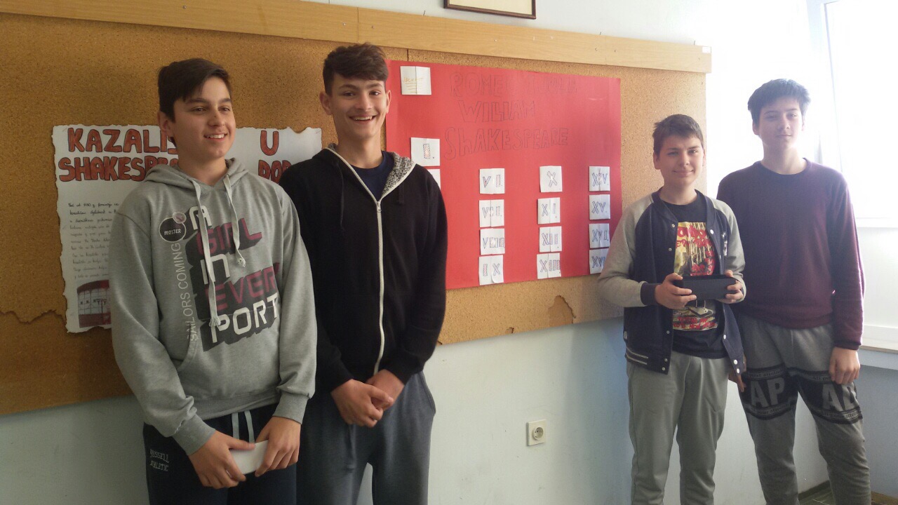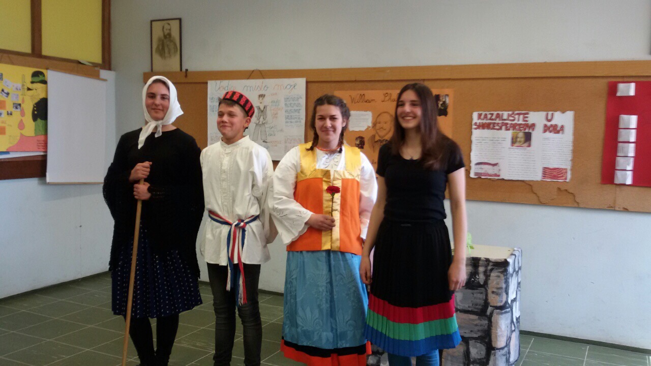 Učenici osmih razreda uz vodstvo učiteljice hrvatskoga jezika Diane Filipi obilježili su 400. godišnjicu smrti velikog književnika Williama Shakespearea.Učenici su uprizorili ulomak iz tragedije Romeo i Julija, no radnju su smjestili pod Juštin prozor u srce Vodica,organizirali su kviz te plakatima i fotografijama prisjetili se Shakesperove uloge u svjetskoj književnosti.