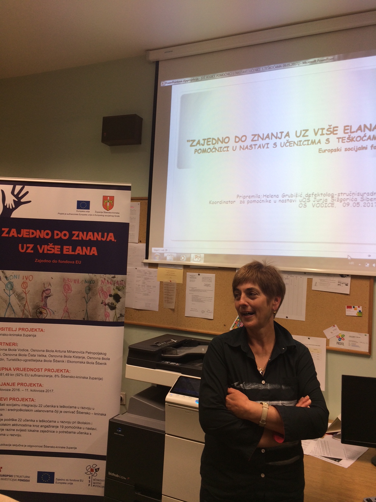 U našoj školi OŠ Vodice i PŠ Tribunj 9. svibmja 2017u sklopu projekta ‘Zajedno do znanja, uz više elana' (Pomoćnici u nastavi s učenicima s teškoćama) je održana prezentacija projekta, te informiranje učitelja.