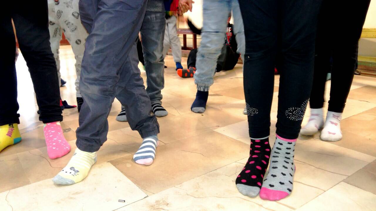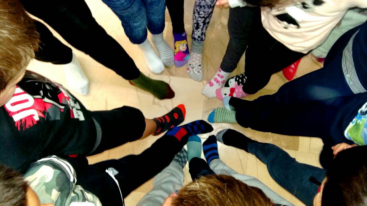 I ucenici prvih razreda obiljezili su Dan sarenih carapa i pokazali podrsku osobama s Down-sindromom noseci sarene carape.