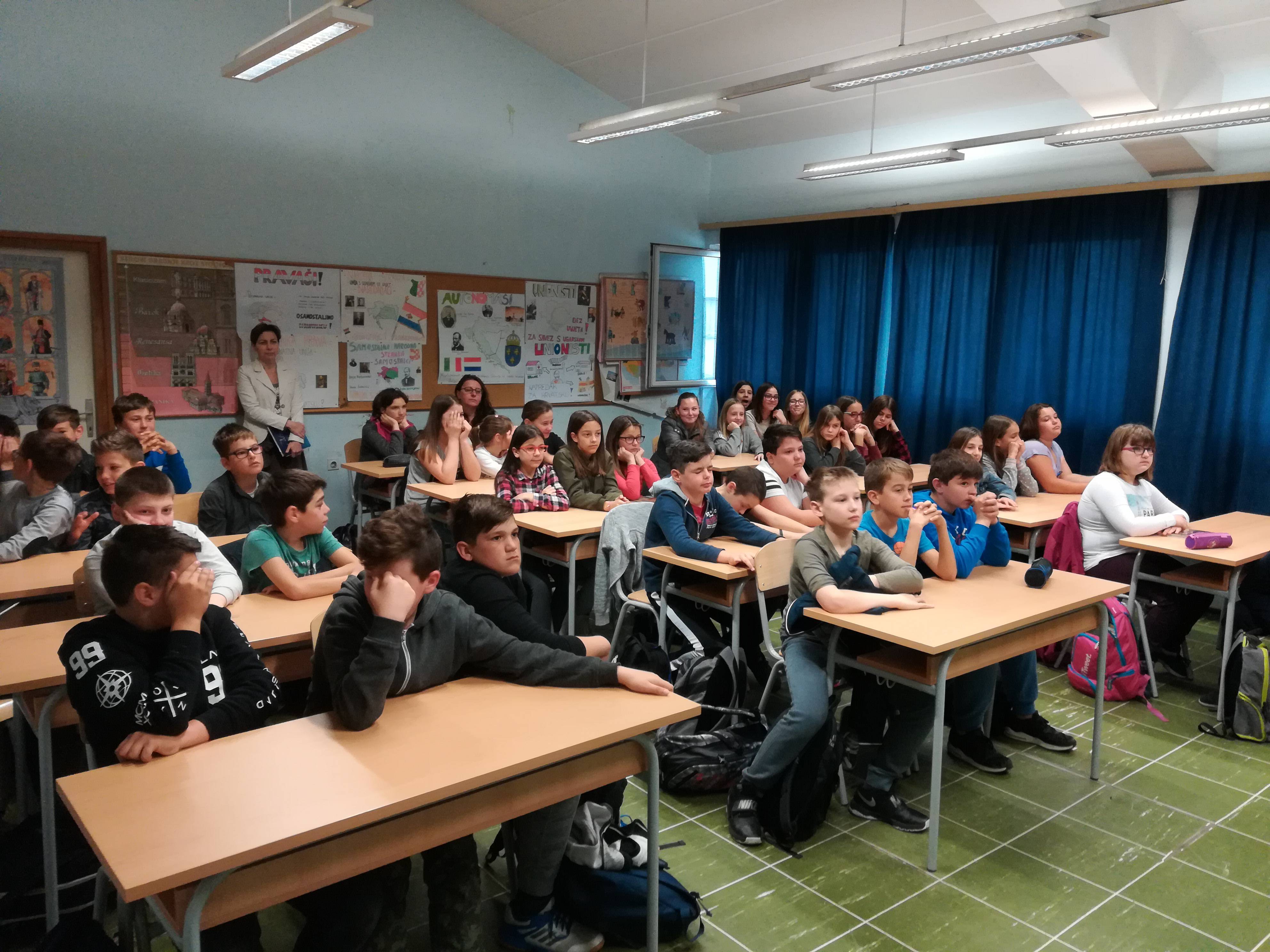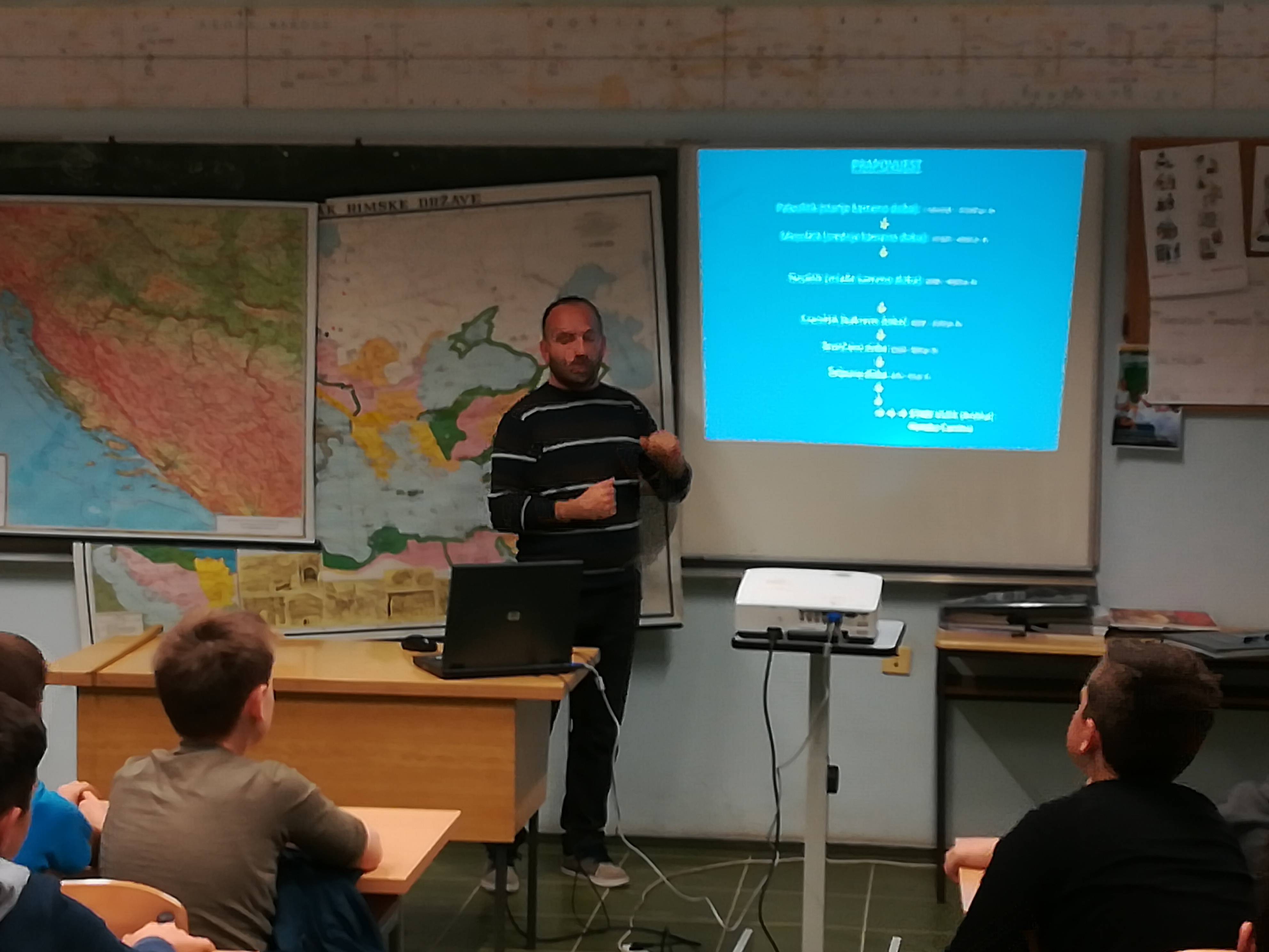 U drugoj godini školskog projekta Vodiški stakleni riton čiji je cilj upoznavanje naših učenika s kulturno-povijesnom baštinom vodičkog kraja, arheolog Emil Podrug - viši kustos Muzeja grada Šibenika, održao je predavanje učenicima četiri peta razreda na temu neolitika i neolitičkog lokaliteta Velištak u zaleđu Vodica.