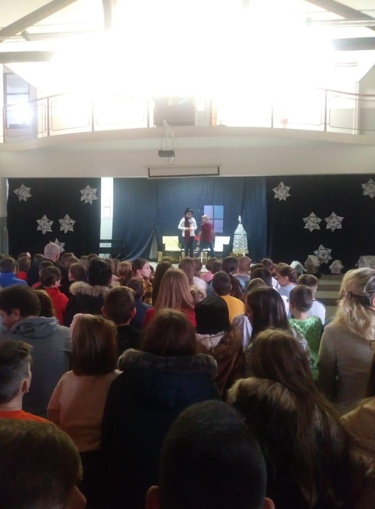 Razdragana lica učenika, učitelja i uzvanika s radošću su promatrala što su sve djeca zajedno s učiteljima pripremila za kraj prvog polugodišta na božićnoj priredbi. U prilogu pogledajte slike. ![]()