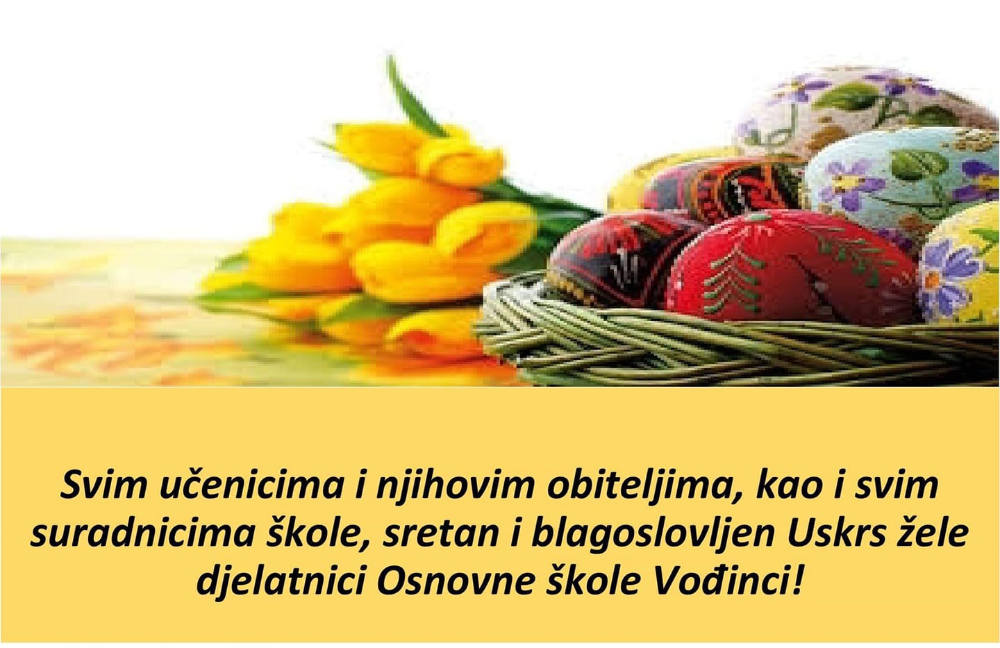 Proljeti odmor učenika traje od 10. do 15. travnja. Nastava počinje 16. travnja po redovitom rasporedu. Prva smjena 2., 4., 6. i 8. razredi.